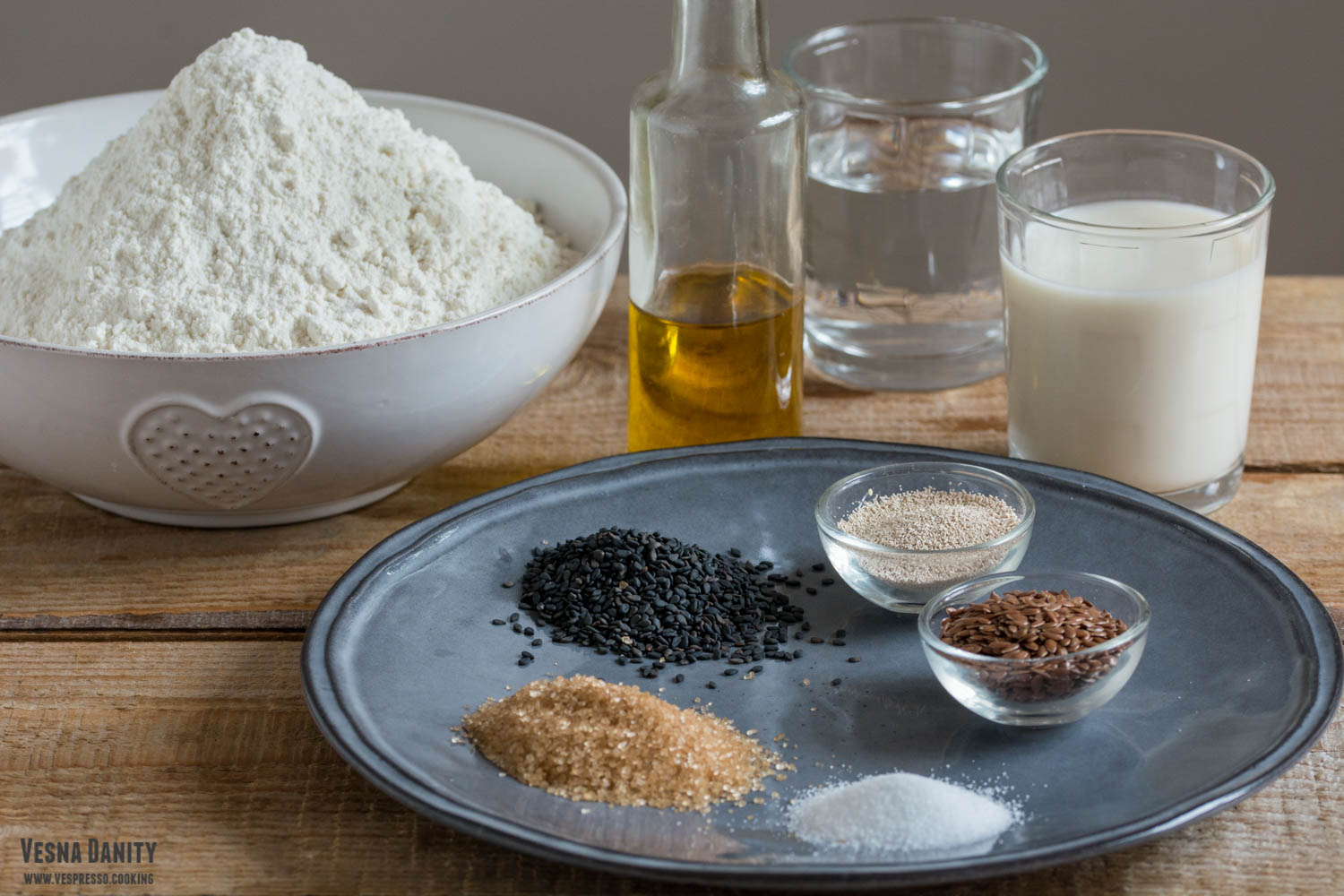 1. Pentru a obține miezul acela elastic specific pâinii care are în componență ou, în această rețetă am înlocuit oul cu semințe de in. Pentru a obține echivalentul unui ou am sfărâmat 1lingură de semințe de in și le-am amestecat cu 3 linguri de apă.