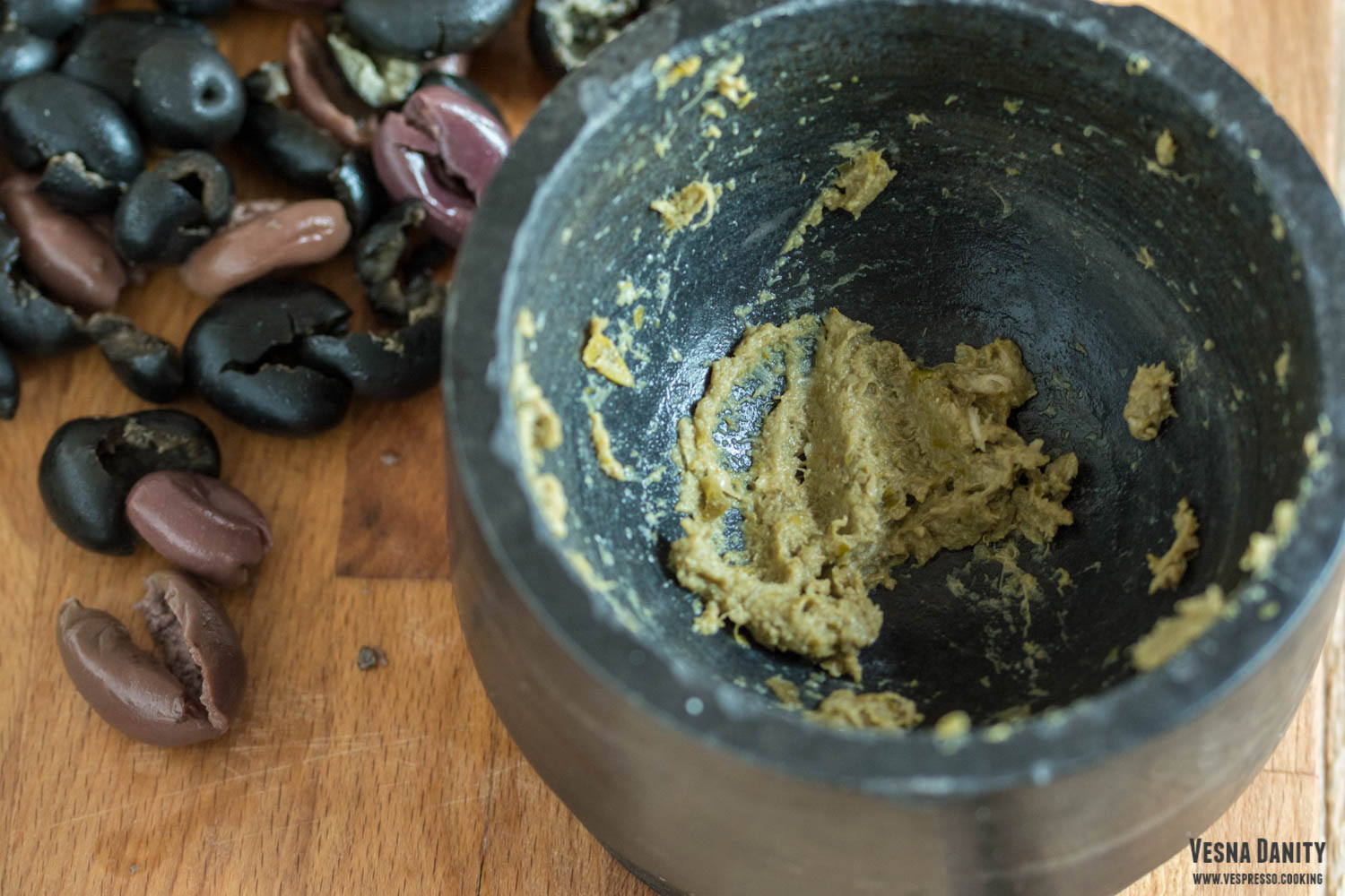 Cremoasă și aromată, această pastă tartinabilă de măsline e răspunsul atunci când tânjesc după ceva bun de tot și cam tot atât de simplu. E un preparat versatil, numai bun de întins pe o felie de pâine, rulat într-o lipie sau servit alături de fel de fel de legume crude. Precum bine am precizat mai sus, crema aceasta este deosebit de simplu de preparat. Se începe prin strivirea măslinelor cu ajutorul unui cuțit de bucătărie, se continuă cu îndepărtarea sâmburilor, iar mai apoi cu mixarea bucăților de măsline cu ajutorul unui blender, alături de câteva linguri de ulei de măsline. La final se asezonează preparatul cu usturoi, capere și un strop de sare și se savurează pe nerăsuflate, încingând câte un colț de pâine direct în bol.