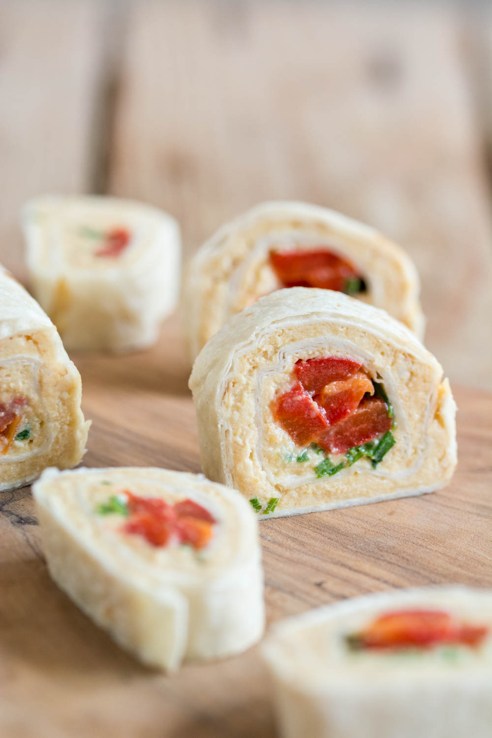 Lipie de casă umplută cu o pastă cremoasă de năut și felii de ardei gras copt, o gustare pe cât de aspectuoasă, pe atât de gustoasă. Nu-i zi de sărbătoare să nu așez pe platoul cu aperitive felii de ruladă cu hummus și ardei, nu din alte motive decât că se prepară deosebit de simplu și sunt primele care se evaporă de pe platoul mai sus menționat. O gustare simplă, rapidă, nutritivă și absolut delicioasă!