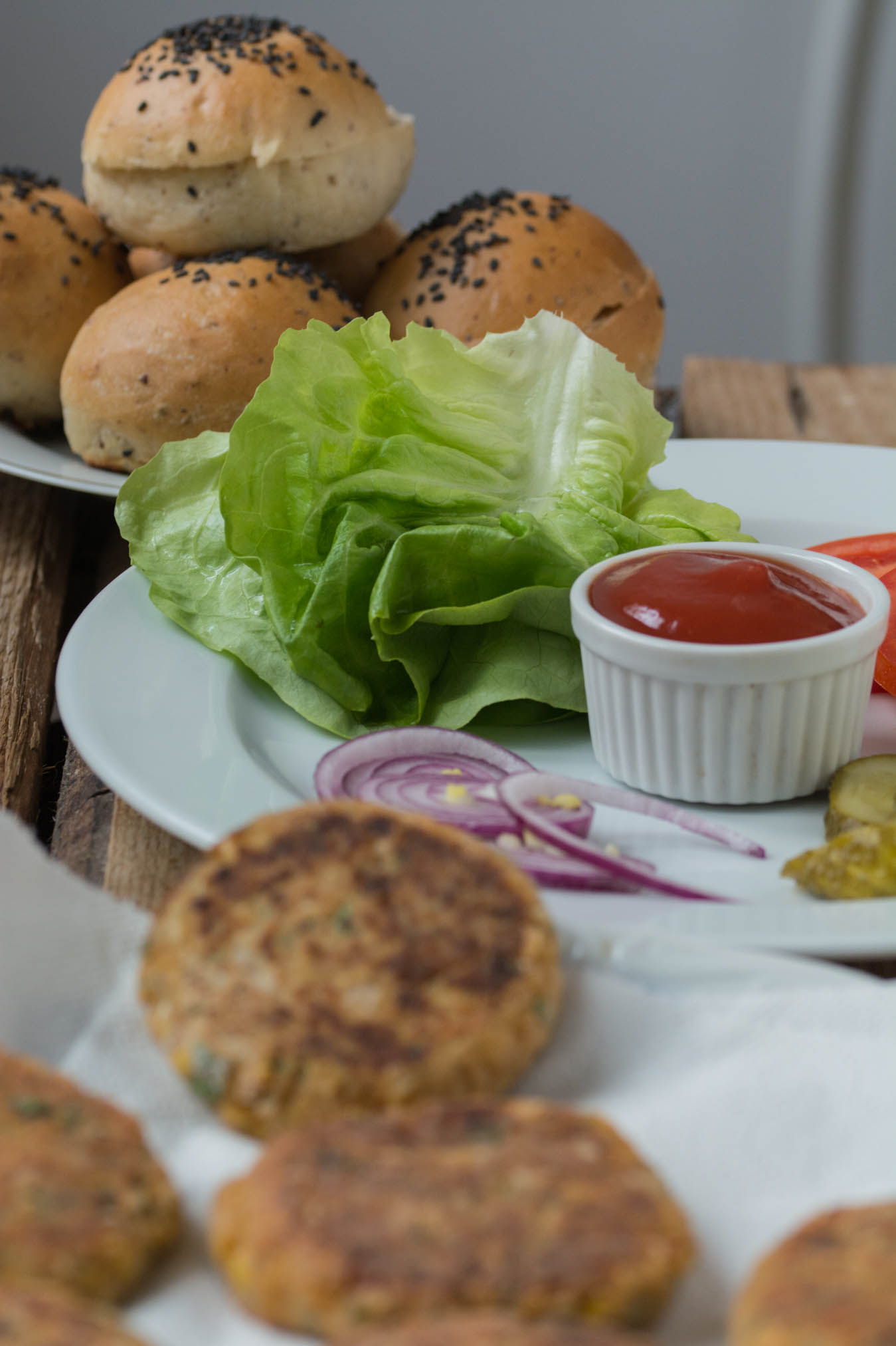 Burger cu chiftea de năut și porumb (vegan / de post)