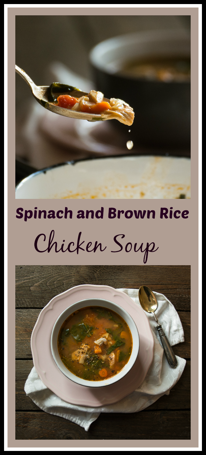 Chicken soup with spinach and brown rice is a hearty and nutritious soup. This colorful and heartwarming soup is packed with lovely autumnal flavors. It is the kind of soup that you crave on a cold winter afternoon and the kind of soup that is capable to brighten a cloudy day.