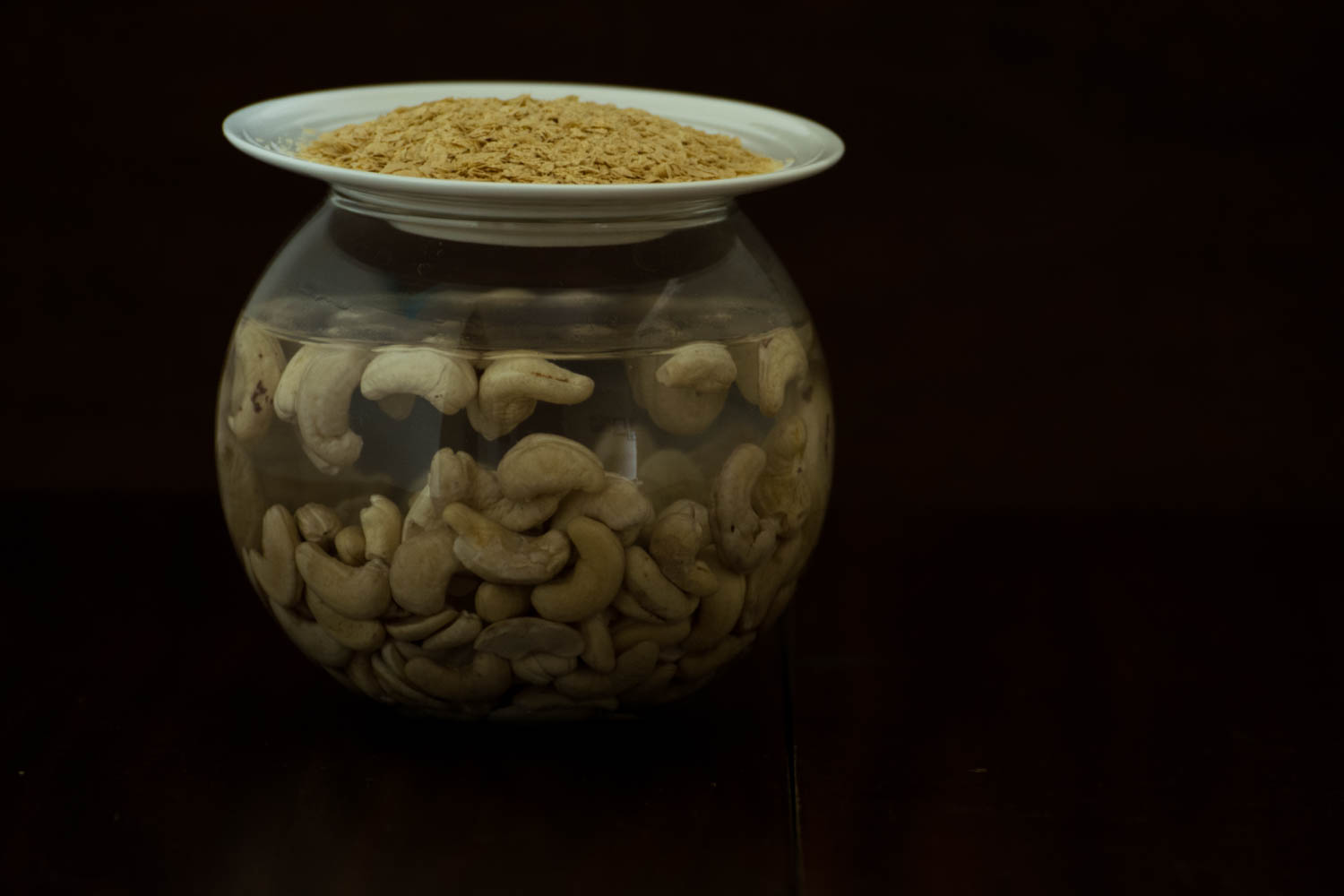 1. Nucile caju se pun într-un vas, se acoperă cu apă și se lasă la înmuiat pentru minim 4 ore.