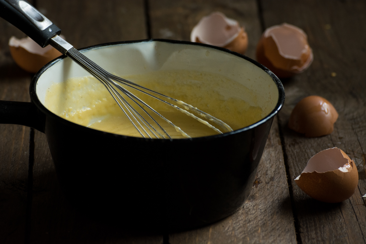 - Înainte de a da în clocot am luat laptele de pe foc. Am adăugat un polonic de lapte fierbinte peste amestecul de ou și am omogenizat imediat.