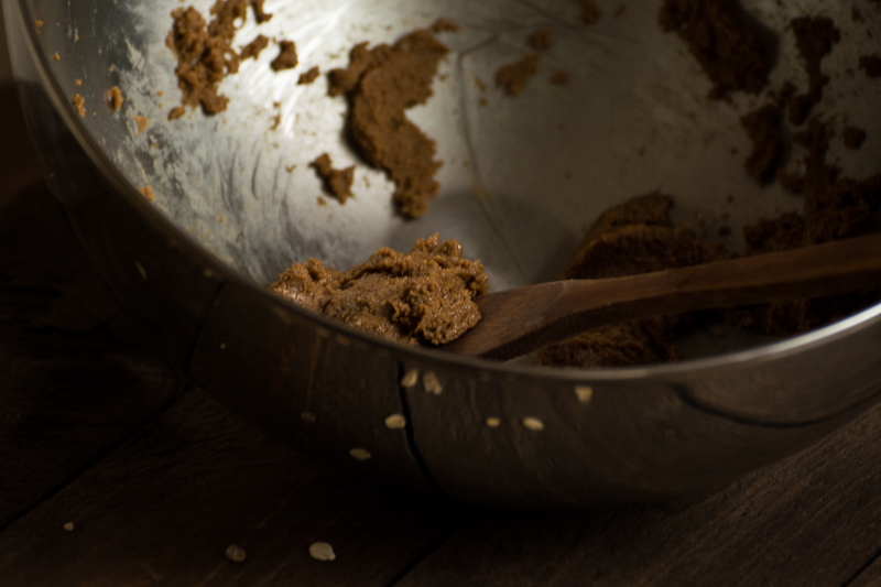 - Am adăugat oul și semințele de vanilie și am amestecat, după care am incorporat fulgii de ovăz, sarea și scorțișoara.
