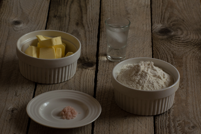1. Într-un bol încăpător se amestecă făina cu sarea. Se incorporează untul în făină (cu ajutorul degetelor), până când amestecul are o consistență nisipoasă.