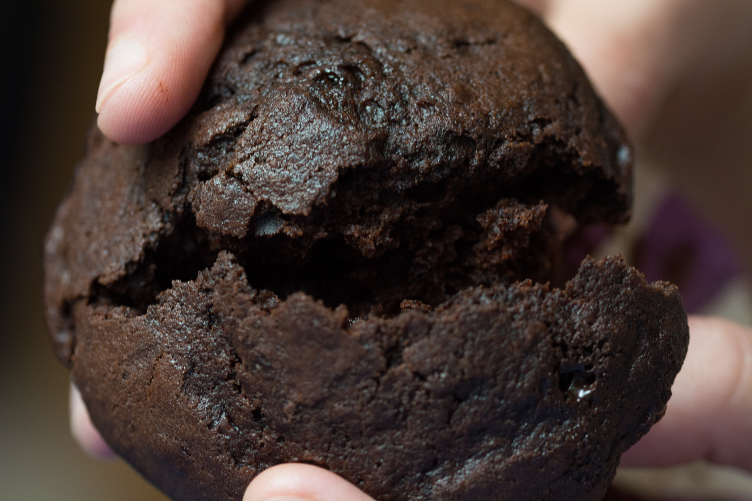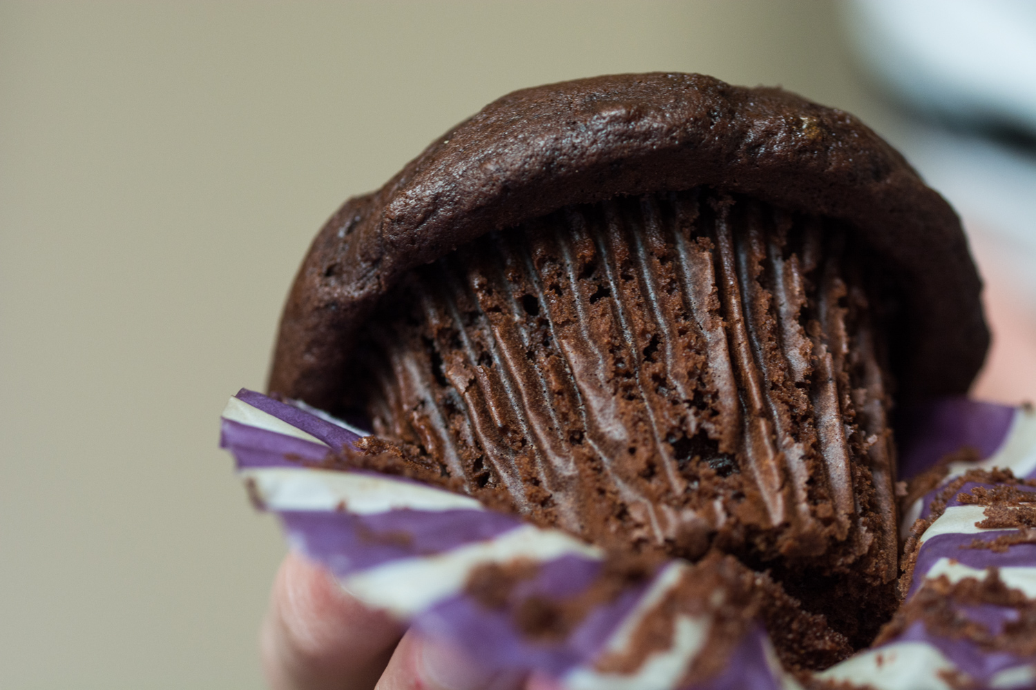 Brioșele acestea îi satisfac până și pe cei mai pretențioși amatori de ciocolată. Sunt cele mai simple brioșe pe care le-am făcut vreodată – amesteci niște ingrediente și pui prăjiturelele la copt, cam asta-i toată filozofia. Sunt extrem de fragede și pufoase, grație laptelui bătut și au un gust bogat, caramelos, grație zahărului brun. Sunt ideale atât la micul dejun, cât și la desert… și în plus, înmiresmează întreaga casă a ciocolată. Până acum sună bine, nu? Mai am un singur lucru de adăugat: se prepară într-o jumătate de oră.