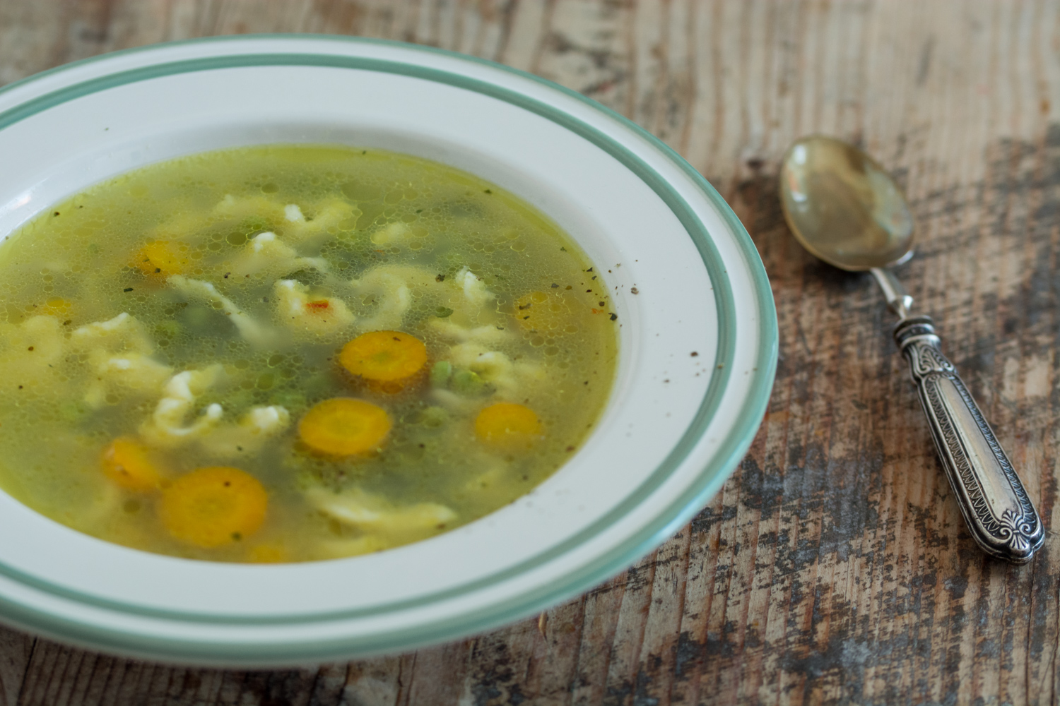 E o supă atât de gustoasă și de consistentă, chiar dacă e compusă din vreo 5 ingrediente, toate primăvăratice. Supa, în sine, se prepară extrem de ușor. Se sotează niște legume fragede în ulei de măsline, se acoperă cu apă și se lasă la fiet. Nici prepararea găluștelor de făină nu-i mare filozofie. Primele două, trei se fac mai greu, după care treaba merge ca unsă. Poate că sunt subiectivă, dar supa aceasta e supa perfectă!