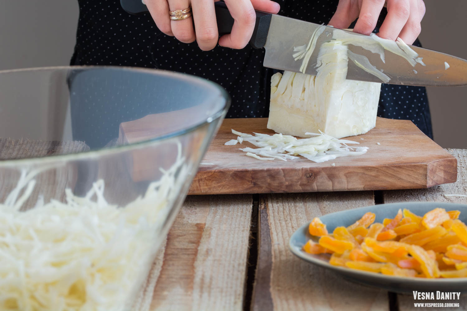 - Am tocat varza în fâșii subțiri (aveam 300g de varză tocată).