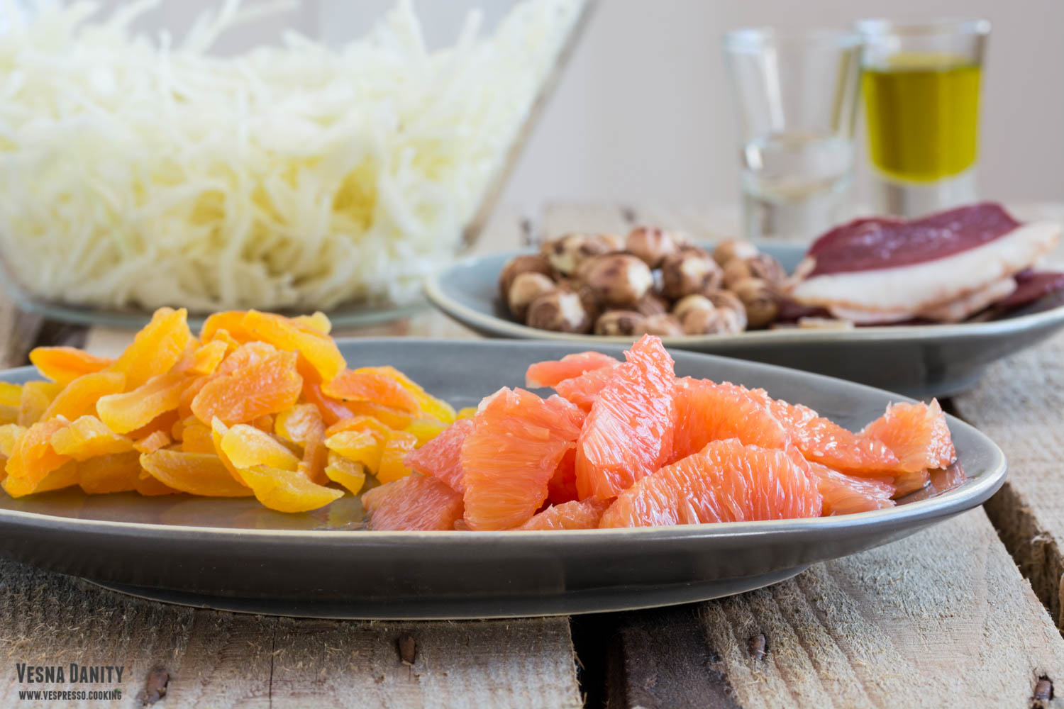 Îmi place salata de varză cu piept de rață afumat, portocale și caise pentru că: