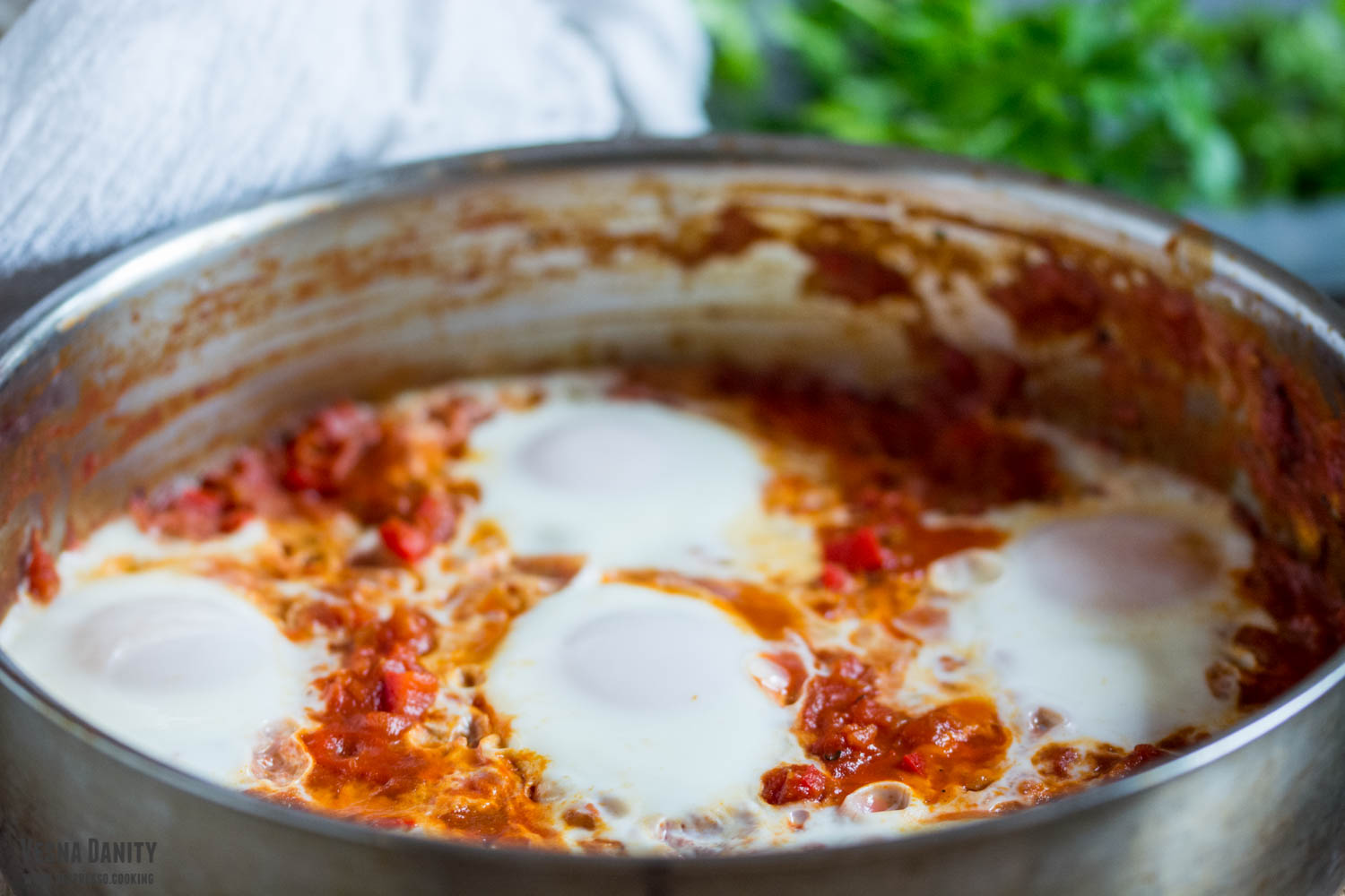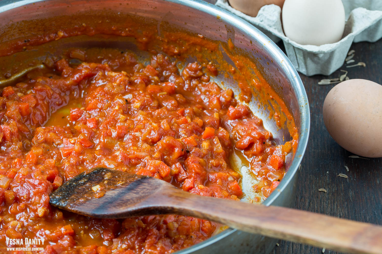 Shakshuka este un preparat nord-african absolut delicios. Sub acest nume adorabil se ascund niște ouă poșate într-un sos luxuriant de roșii. Shakshuka se servește în general la micul dejun, împreună cu lipii (pita), dar poate fi servit și la prânz sau cină. O tigaie, ulei de măsline, ceapă, ardei, usturoi, chimion și paprika. Sos de roșii. Cinci ouă poșate vreo cinci minute. Frumusețea acestui preparat este faptul că toată poezia se desfășoară într-o singură tigaie, n-ai nevoie de alte oale și ulcele.