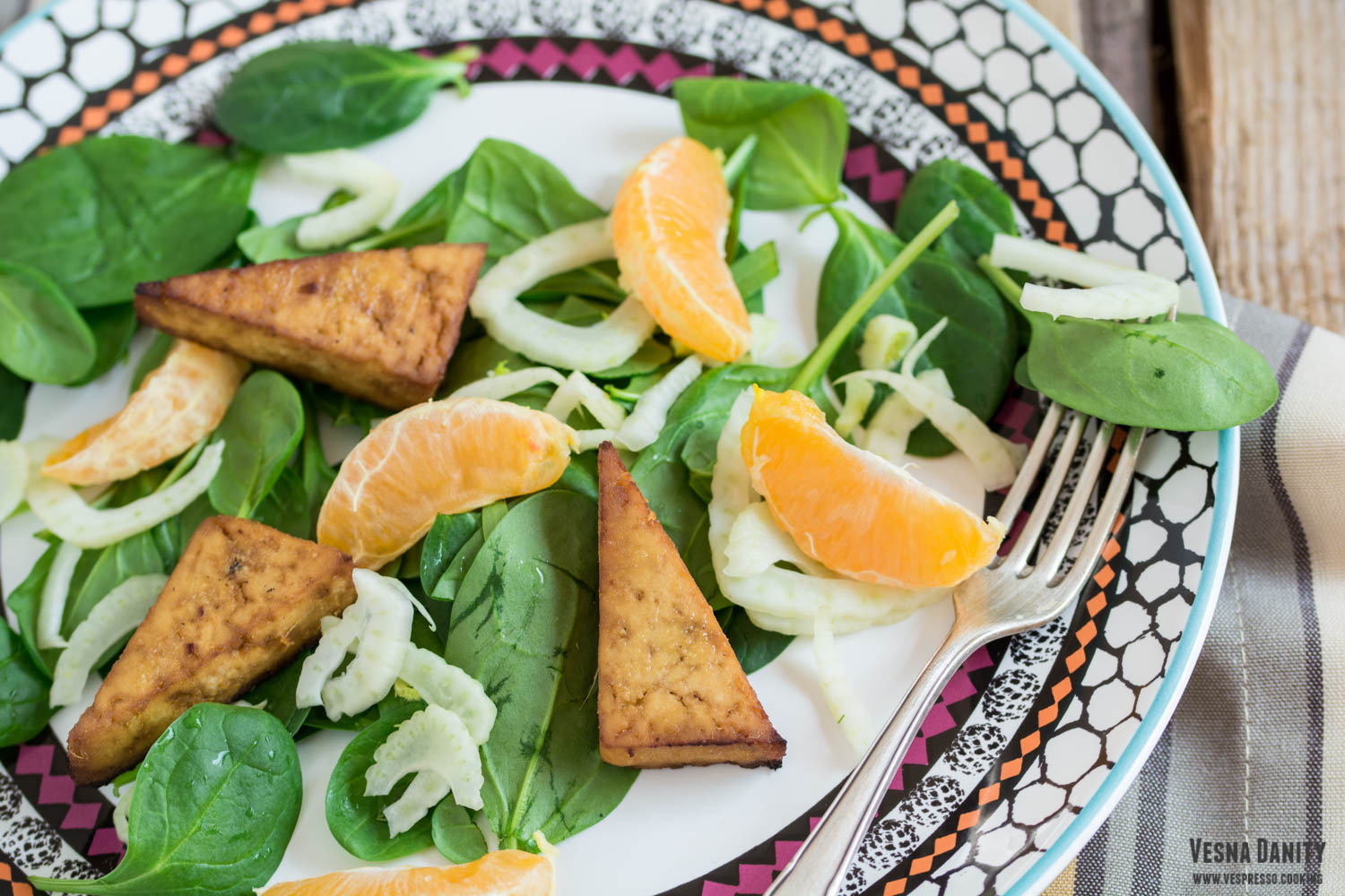 Îmi place salata de spanac cu fenicul, mandarine și tofu pentru că: