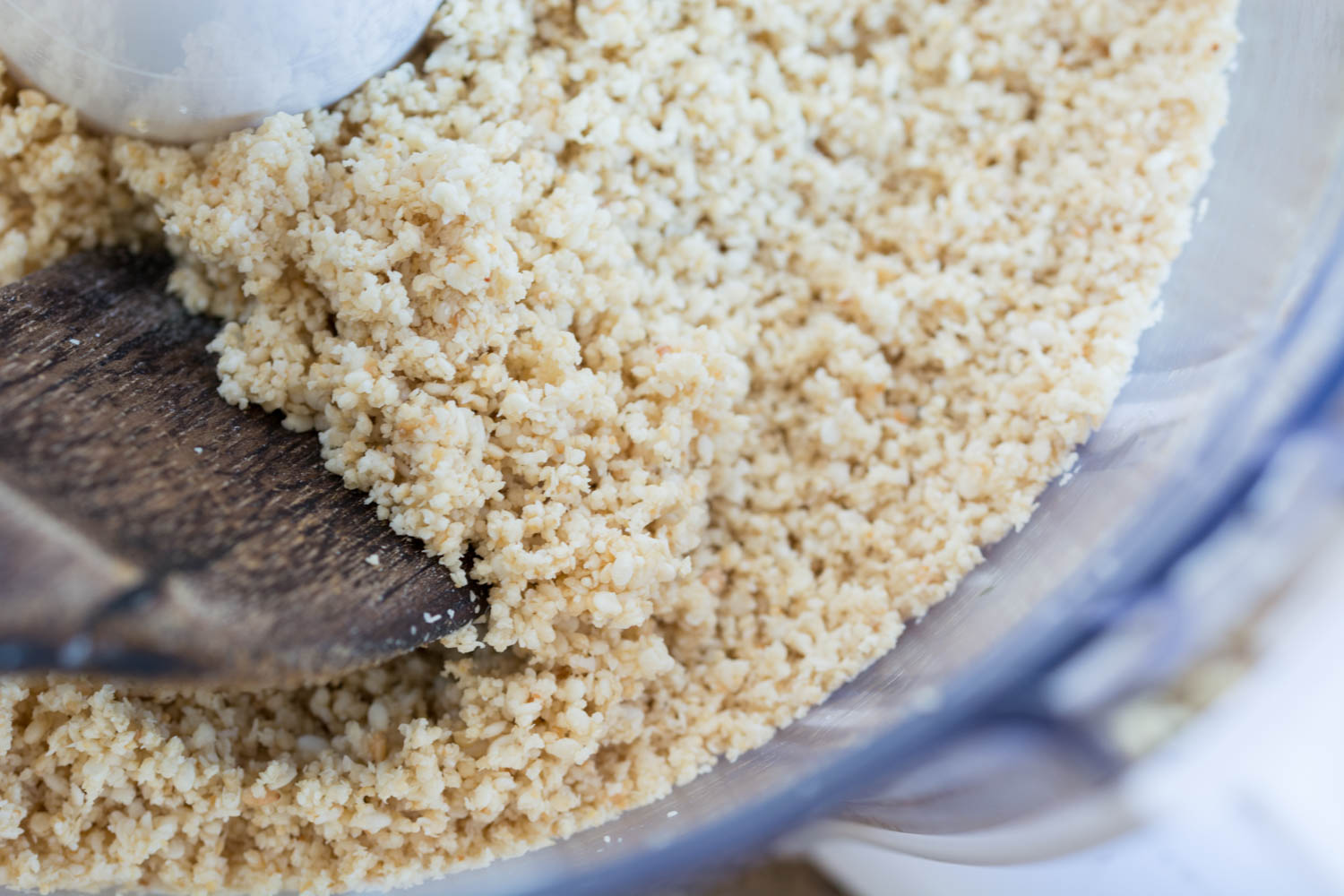 - După ce s-au răcit am pornit robotul și le-am măcinat până aveau consistența nisipului umed (procesul a durat cam 4 – 5 minute, timpul variază în funcție de puterea aparatului).