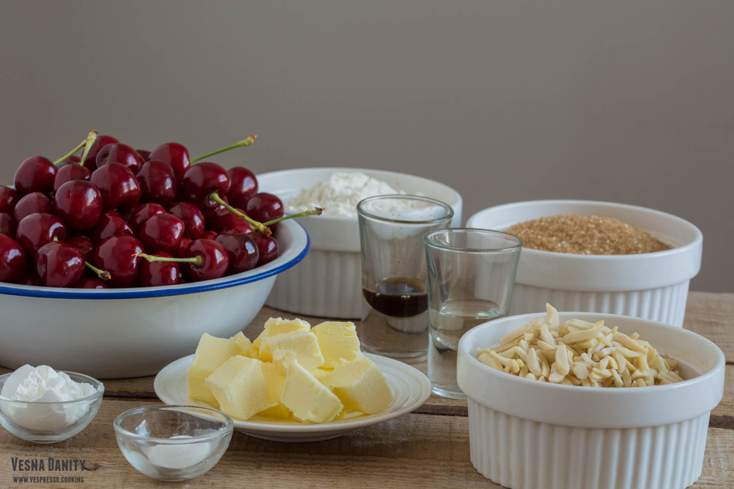 - 800g cireșe proaspete (600g după ce le-am eliminat sâmburii) – se pot folosi și cireșe din compot sau congelate