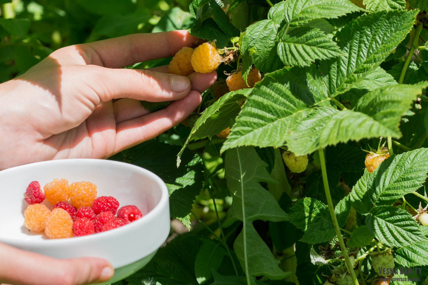 - Am servit crumble-ul de cireșe garnisit cu un moț mare de iaurt grecesc și cu zmeură proaspătă.