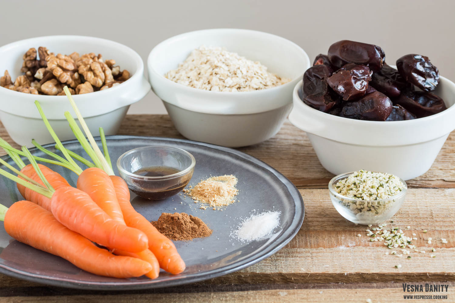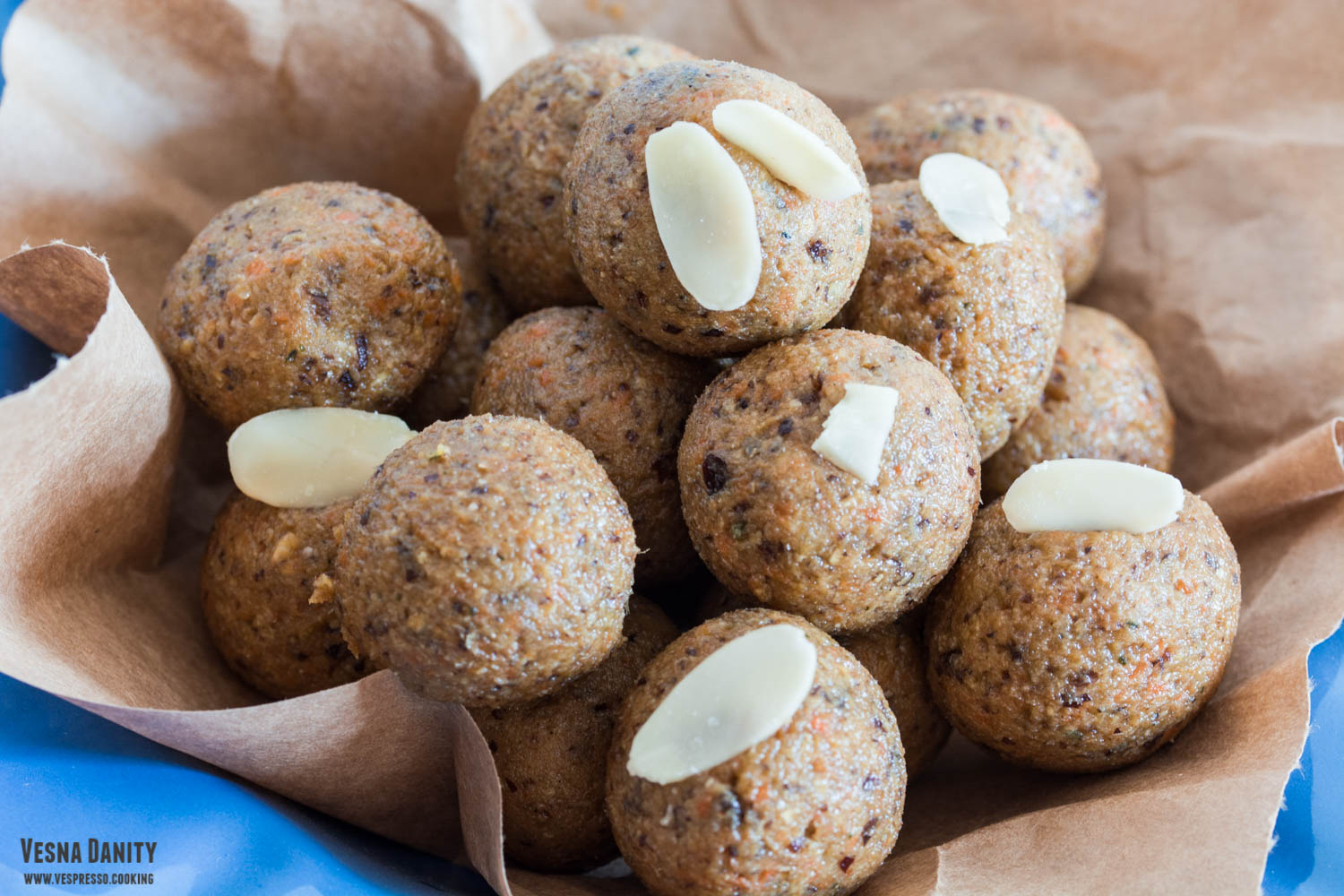 Mingiuțele acestea sunt foarte permisive. În locul morcovului la fel de bine se pot adăuga fructe uscate (prune, stafide, caise) sau mix de nuci (pecan, migdale, fistic). Dacă amestecul e prea uscat, mai puteți adăuga câteva curmale pentru a-l lega.