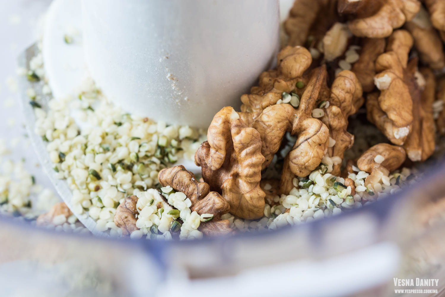 Bună! În acest caz eu aș sări peste nuci și aș crește cantitatea de semințe de cânepă cu vreo 2 linguri. Dacă amestecul iese prea uscat, câteva curmale adăugate în plus îl vor umezi. O altă variantă ar fi înlocuirea nucilor cu aceeași cantitate de semințe de floarea soarelui / dovleac.