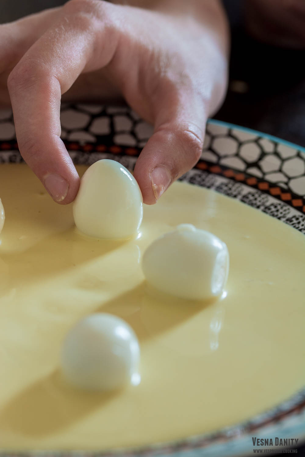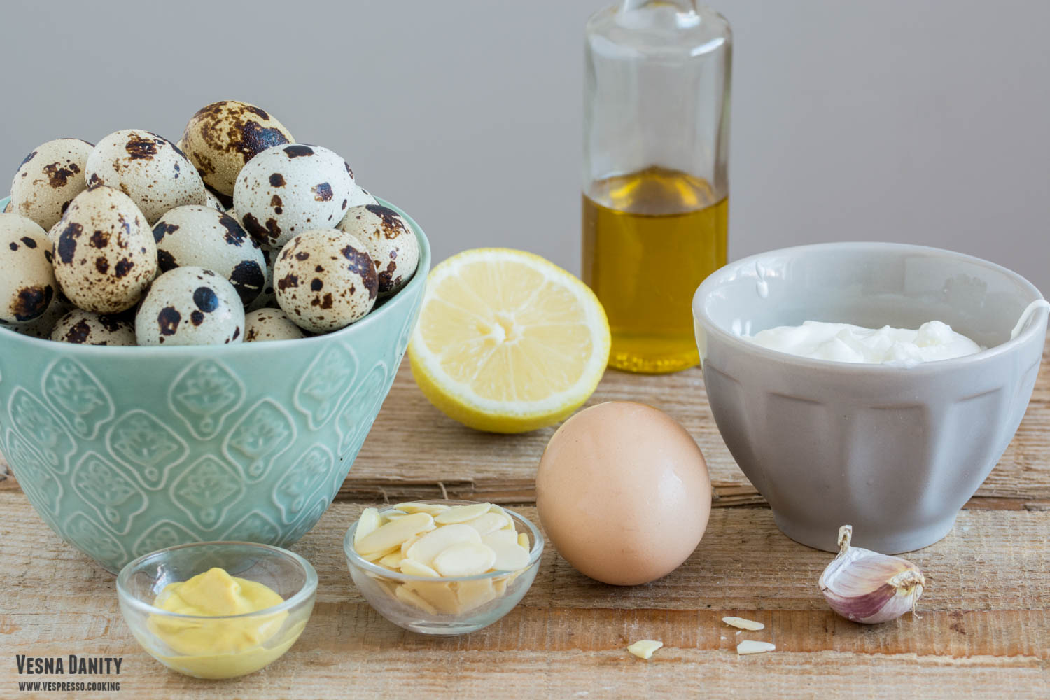 Ouă de prepeliță cu sos de usturoi și iaurt grecesc