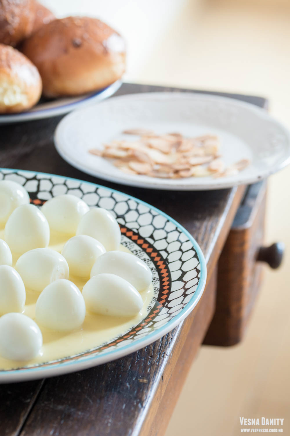 Rețeta mea preferată de ouă de prepeliță este și cea mai simplă rețetă pe care o prepar. E delicioasă și e gata în nici 15 minute. Fierb ouăle timp de 3 minute, le decojesc și le servesc alături de un sos catifelat de usturoi și iaurt grecesc. Nu știu ce anume le face perfecte. Poate simplitatea sosului care permite ouălor să strălucească. Poate prepararea sosului care îmi amintește de grația cu care învârtea bunica mea în maioneză. Sau poate dansul bucății de pâine frânte-n sosul galben citrin. Pur și simplu nu știu.