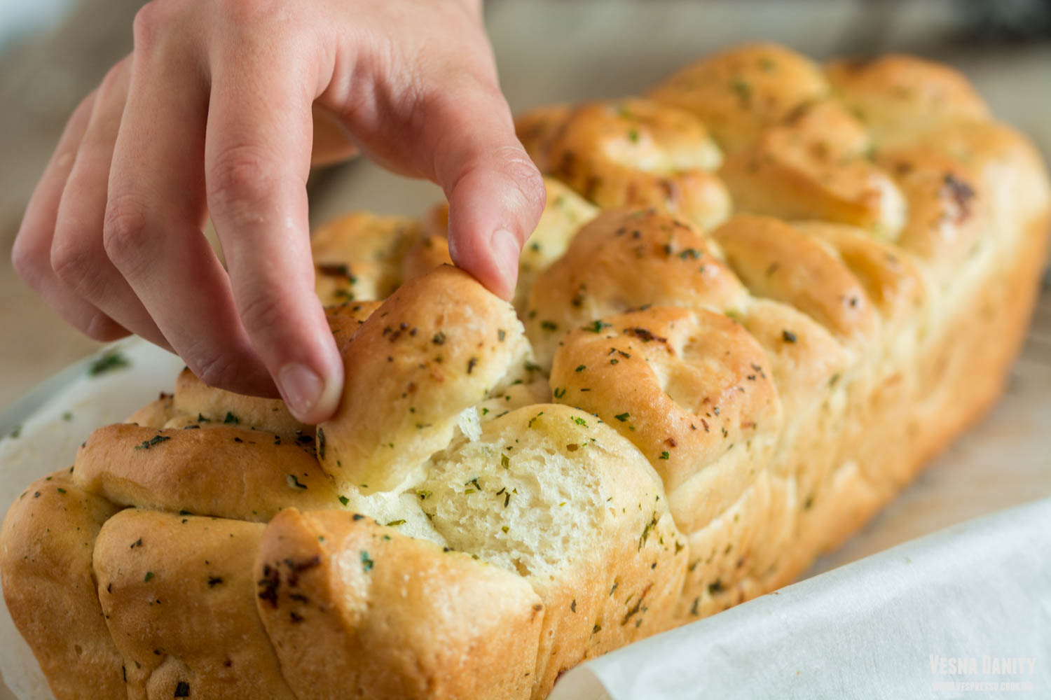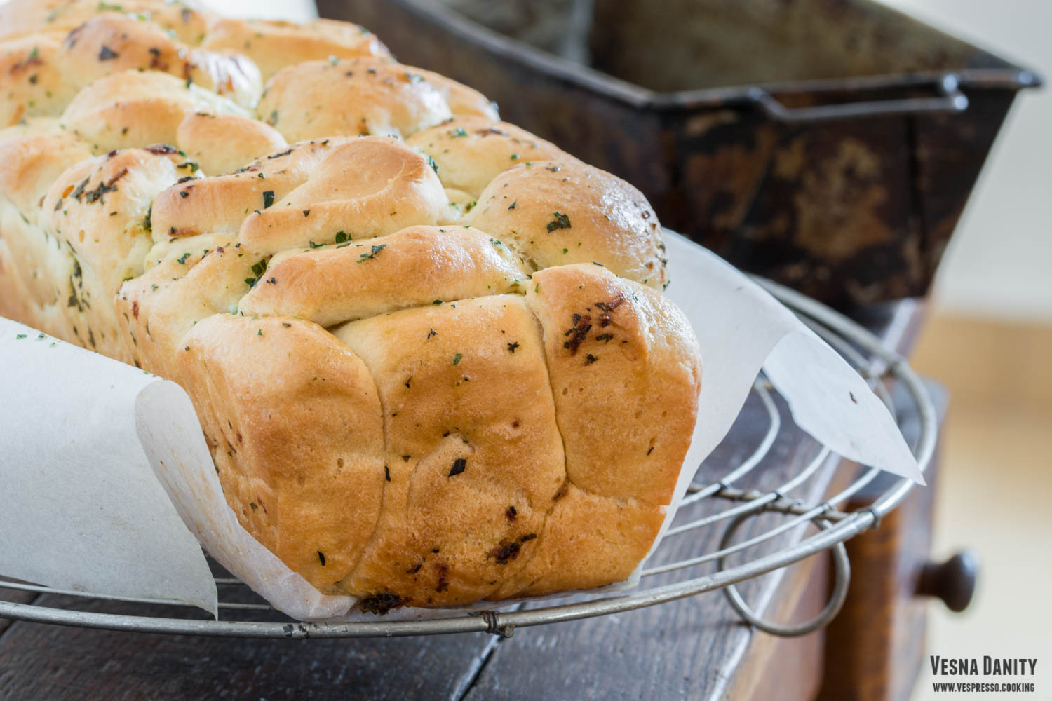 Pe lângă faptul că pâinea aceasta are factorul wow, mai e și extrem de savuroasă. E ceva atât de satisfăcător în a rupe pâinea în bucăți, bucăți care pur și simplu se topesc în gură și te răsfață cu arome de unt și usturoi copt. E o pâine aparte, care musai trebuie încercată oricând pe parcursul anului, cu atât mai mult vara, când grădinile abundă în plante aromatice. Încearc-o și mi-e imposibil să cred că vei regreta!
