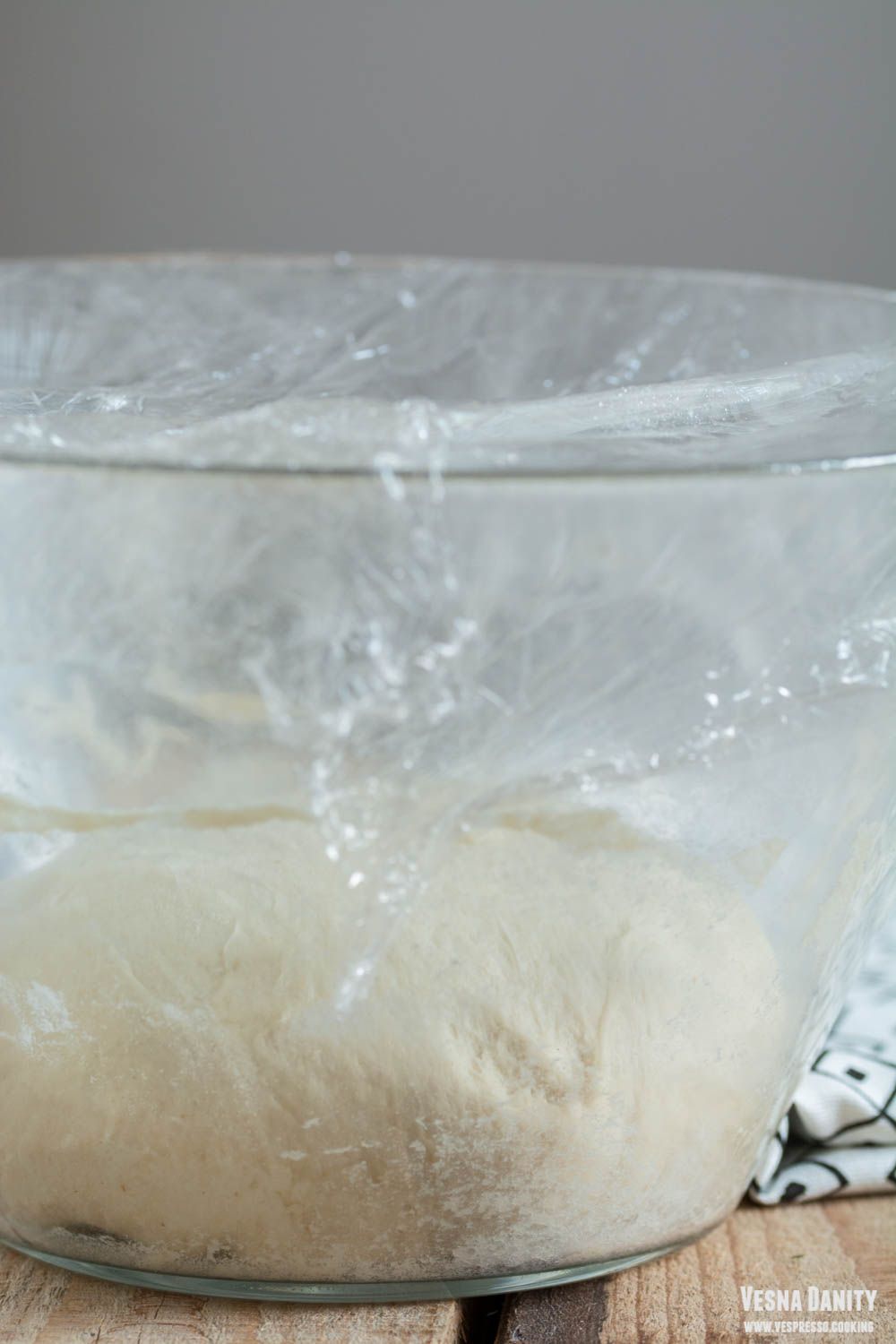 - Am acoperit tava cu un prosop de bucătărie, după care am lăsat-o la dospit timp de 40 – 50 de minute.