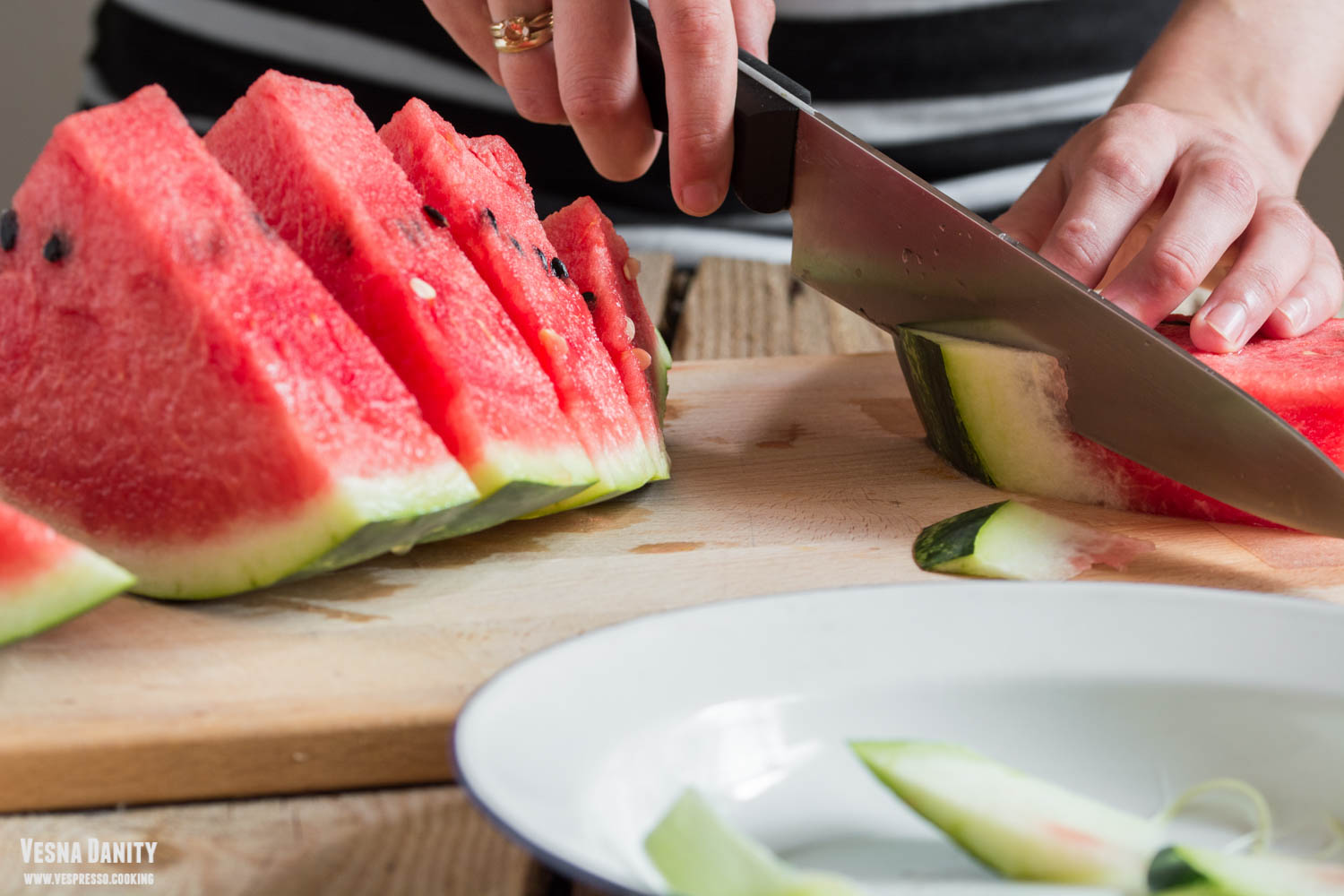 E consistentă, grație proteinelor furnizate de linte, așa că e absolut perfectă servită la prânz, cină, sau la iarbă verde și e o idee genială de a recicla pepenele verde care se tot trage în frigider de vreo două zile bună, fără să-i acorde cineva atenție. Salata aceasta e o nebunie curată!