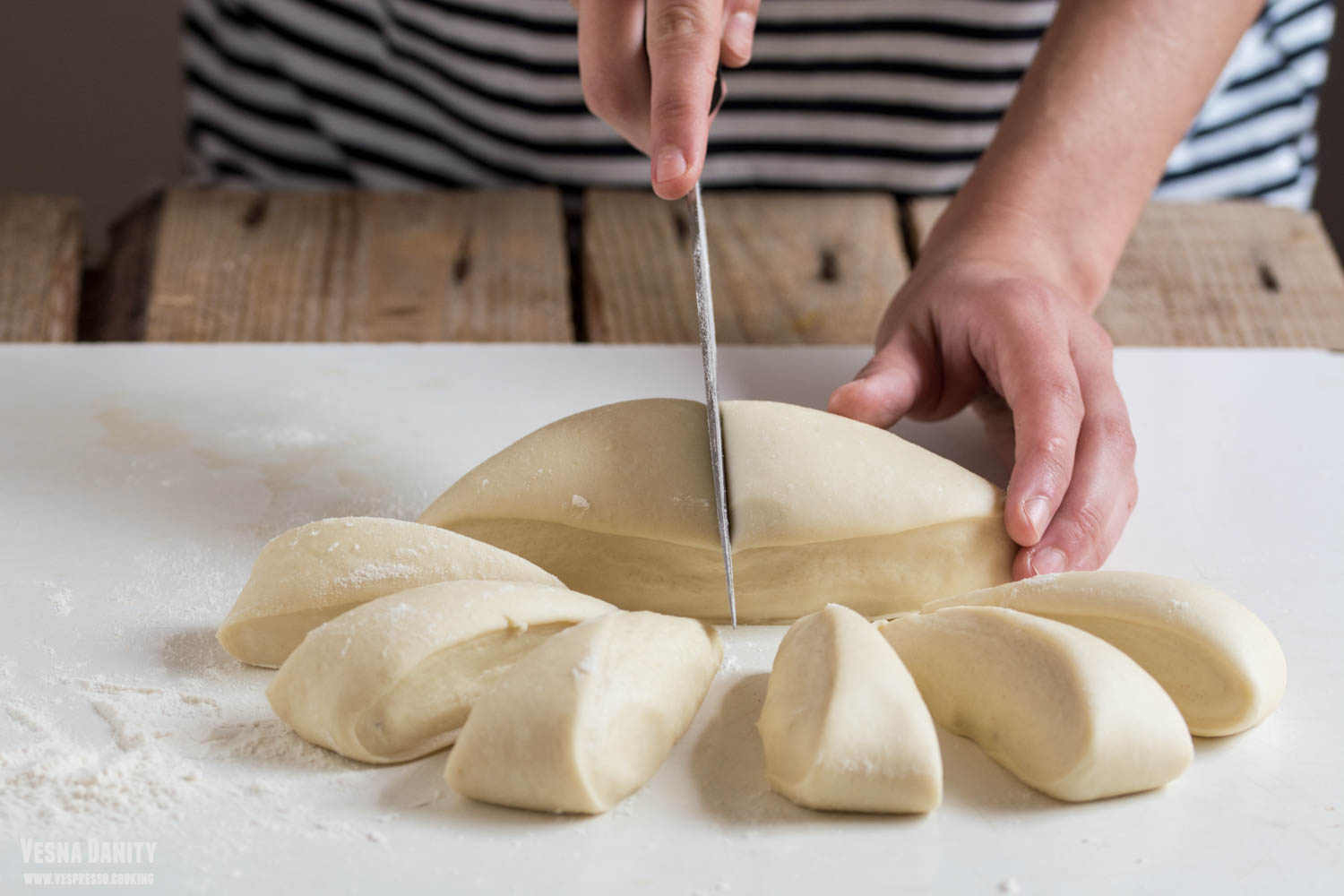 • 450g făină albă + 30g ptr frământat (3 căni + 2 linguri de făină)