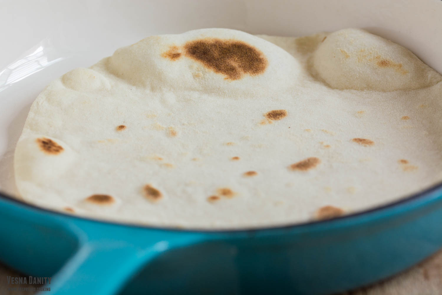 6. Am procedat la fel și în cazul celorlalte lipii și le-am așezat peste prima lipie. Acoperirea lipiilor fierbinți le face moi și flexibile.