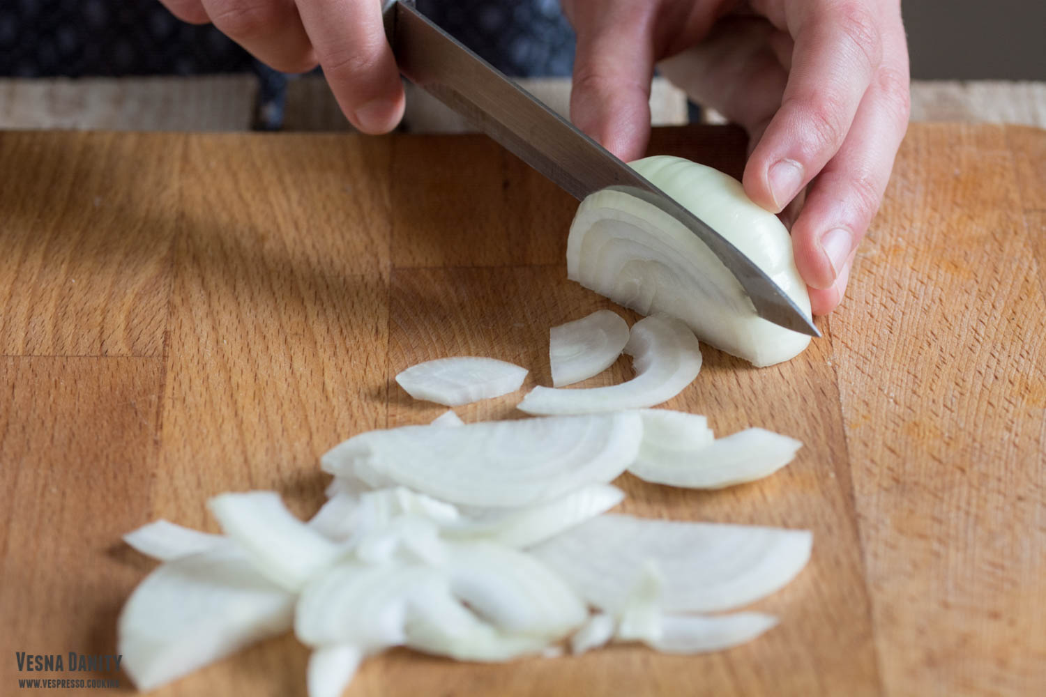 - Pregătirea legumelor. Am curățat ceapa și am tocat-o fin. I-am îndepărtat ardeiului semințele și l-am tocat și pe el în cubulețe. Am decojit usturoiul și l-am tocat fin.