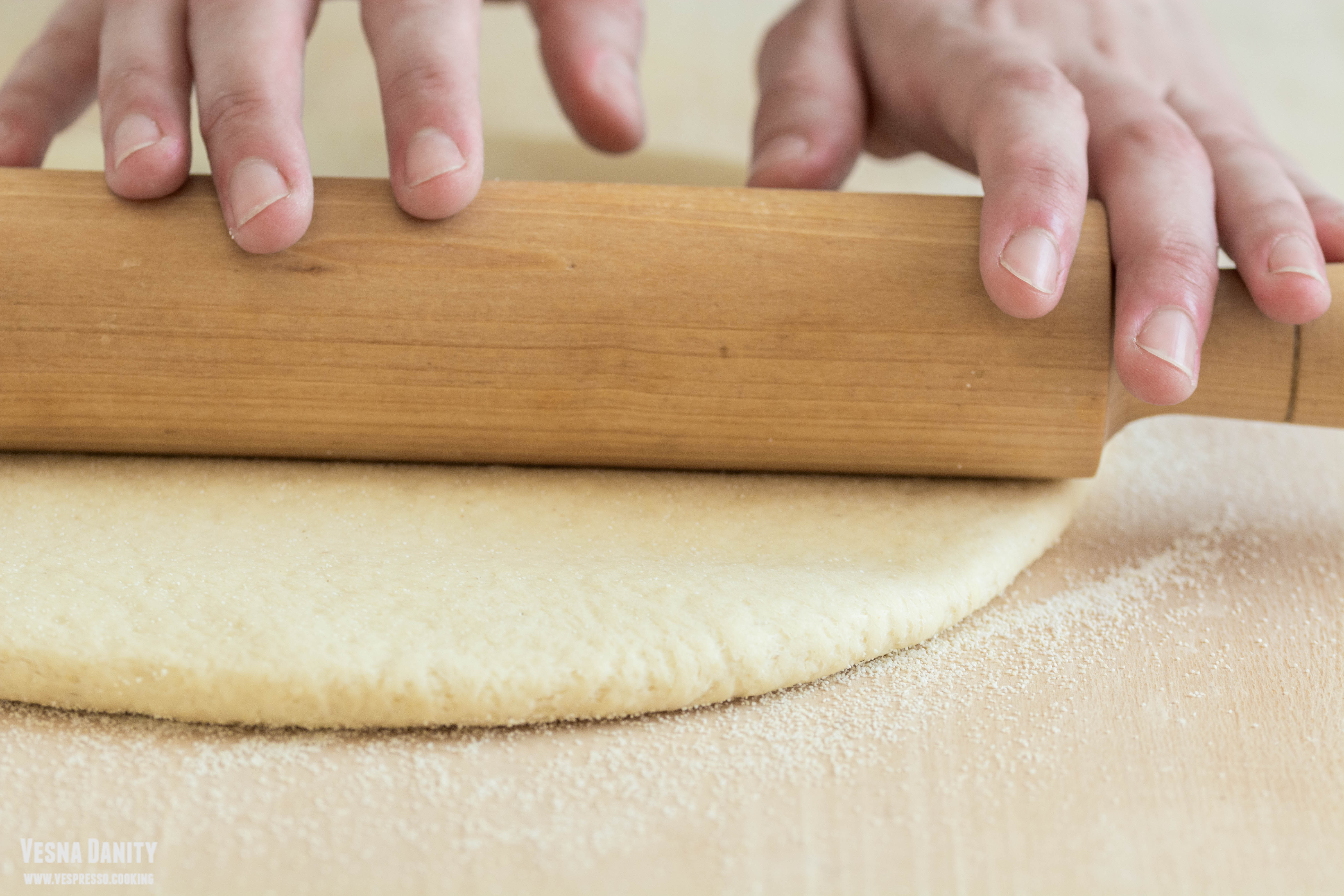- Preîncălzirea cuptorului și pregătirea tăvii. Am preîncălzit cuptorul la 200°C / 400° F (treapta 6). Am luat o tavă (cu diametrul de 26cm) cu fund detașabil, am uns-o cu ulei de cocos și am tapetat-o cu hârtie de copt (am folosit ulei pentru ca hârtia să se lipească de tavă).