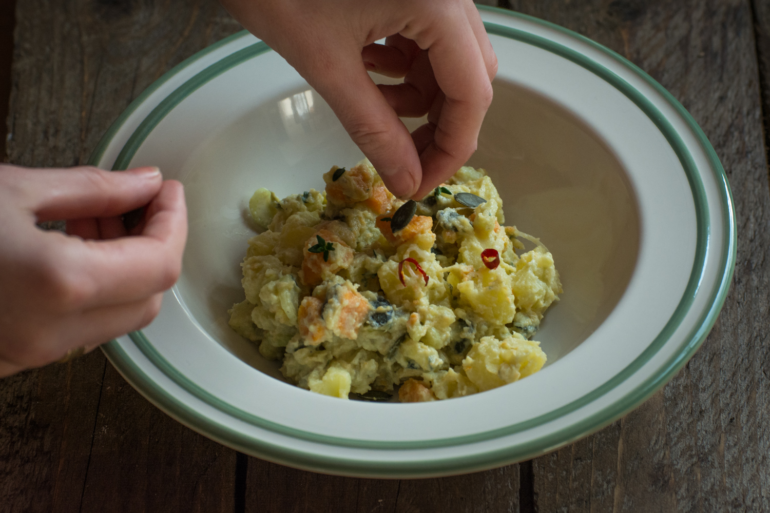 Am descoperit această salată acum vreo 2 ani și exact din momentul acela nu-mi pot imagina viața fără ea. La cât de rapid se prepară și la cât de delicioasă poate să fie, nu-i de mirare că o prepar cel puțin o dată pe săptămână pe perioada verii. Păstăile de fasole verde se fierb în apă cu sare atât cât să înmoaie, dar fără să-și piardă fermitatea de tot, după care se răcoresc într-un bol mare cu apă și gheață. Până fasolea își face binemeritata siestă în bol, eu prepar rapid o maioneză de casă, o amestec cu iaurt grecesc și o aromatizez cu usturoi și pătrunjel verde. Îmbrac fasolea în straie de sărbătoare și o devorez cu atâta pasiune, ca și cum ar fi ultima masă.