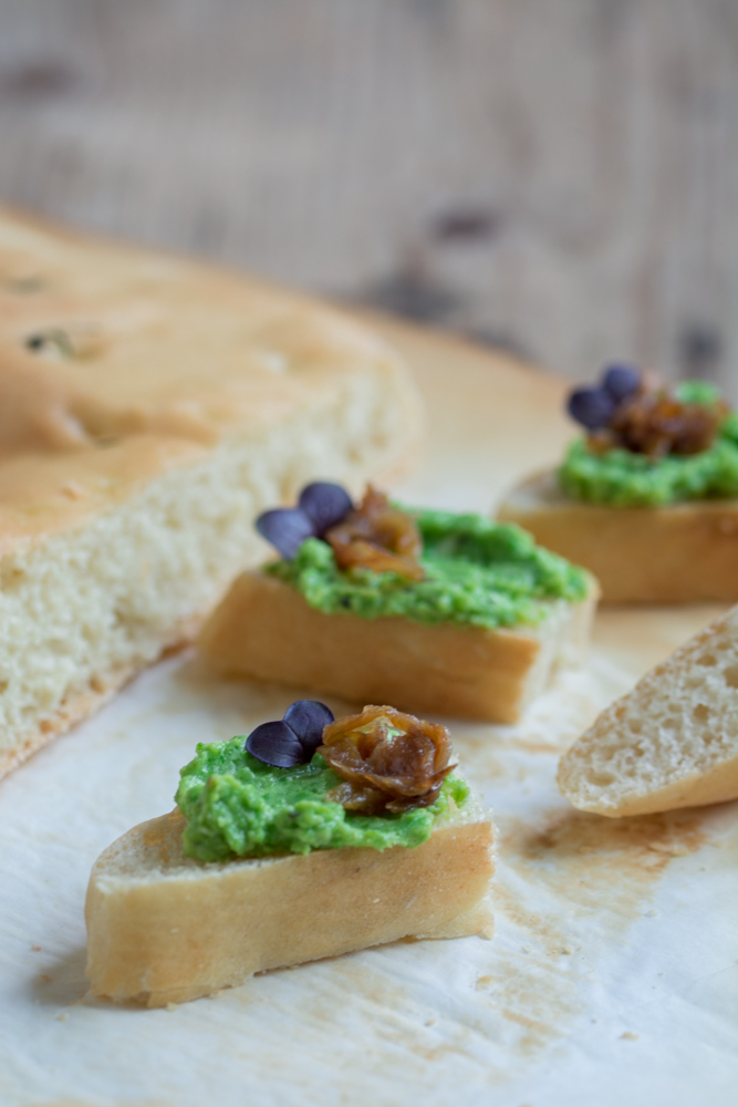 Pâté de mazăre și ricotta cu ceapă caramelizată