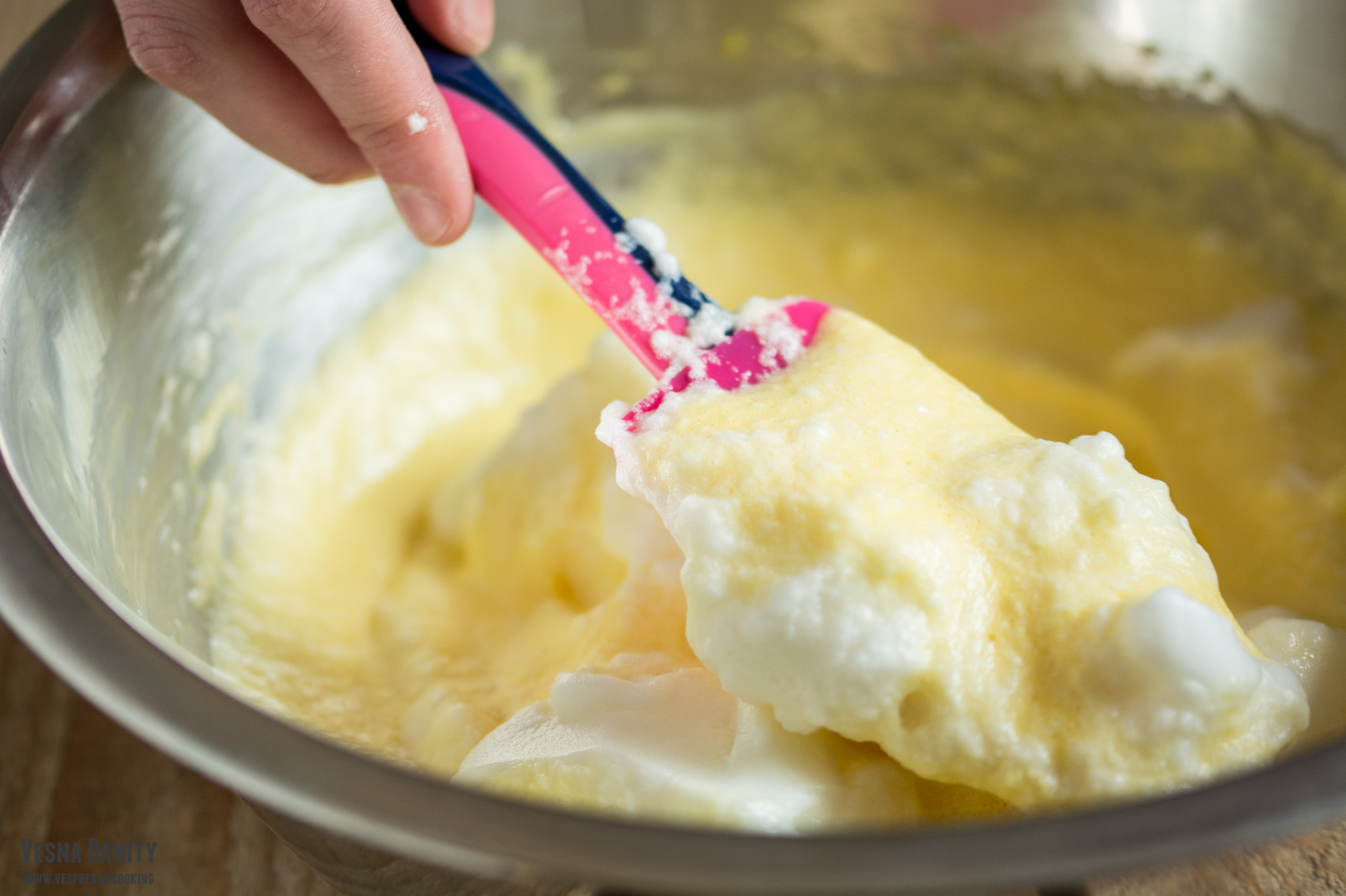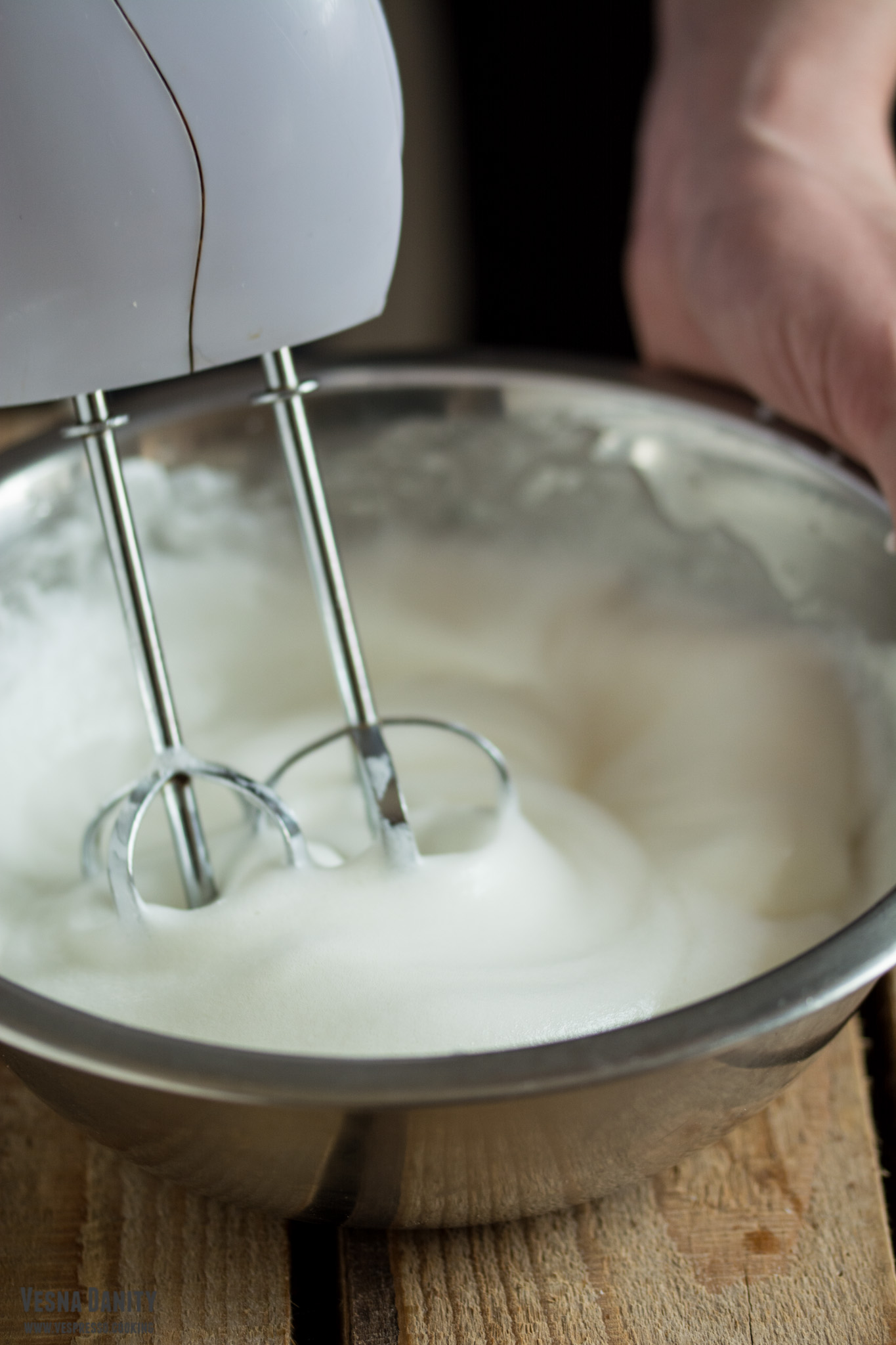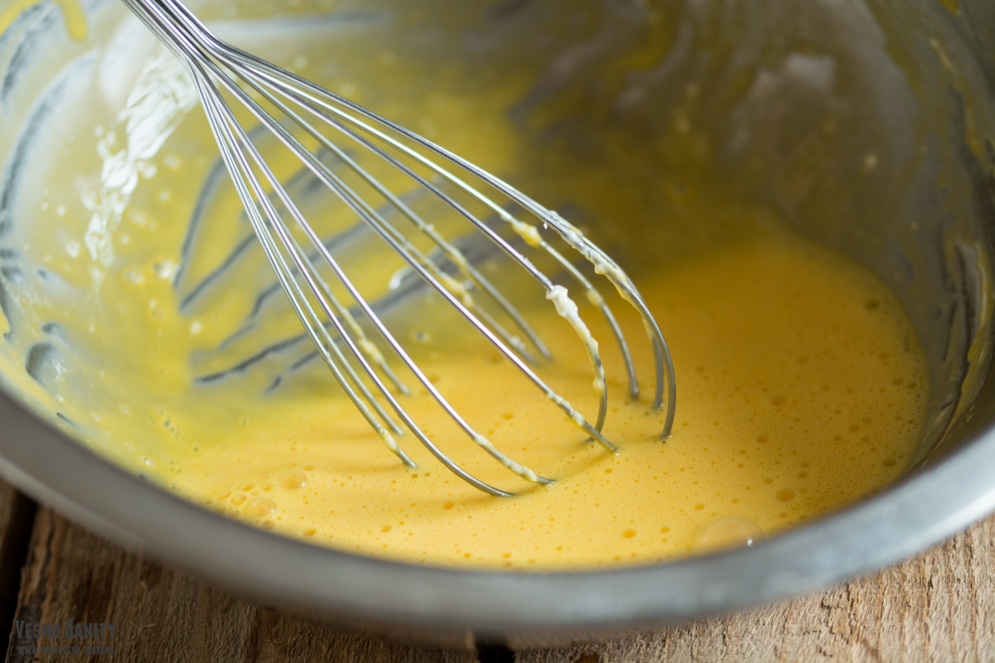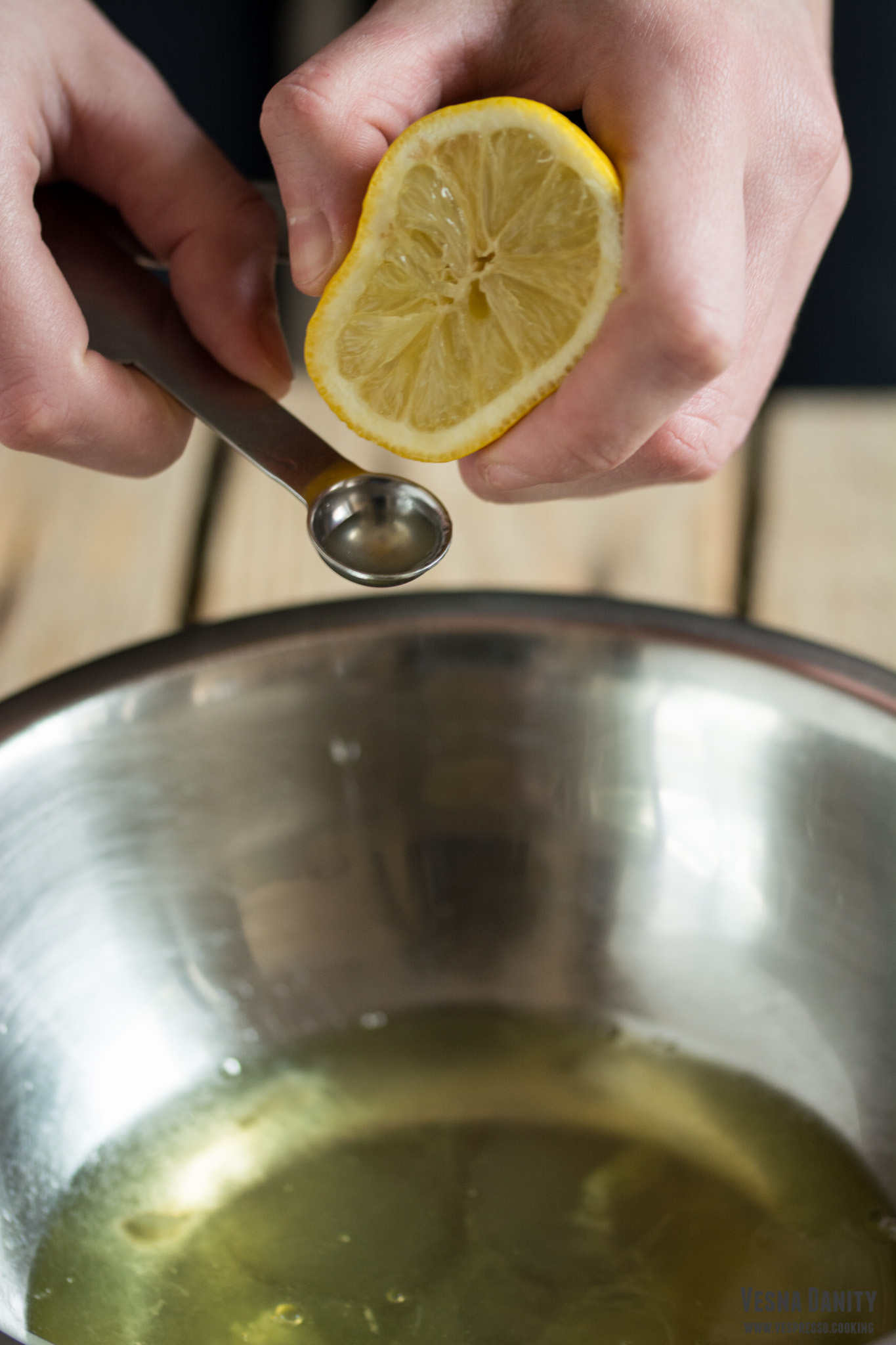 - Prepararea înlocuitorului de ou. Am așezat 1 lingură de semințe de in în mojar și le-am sfărâmat energic cu ajutorul unui pistil. Am așezat pudra astfel obținută într-o ceașcă și am acoperit-o cu 3 linguri de apă. Am lăsat amestecul deoparte timp de 5 minute. După ce s-au scurs cele 5 minute, am observat că amestecul devenise gelatinos.