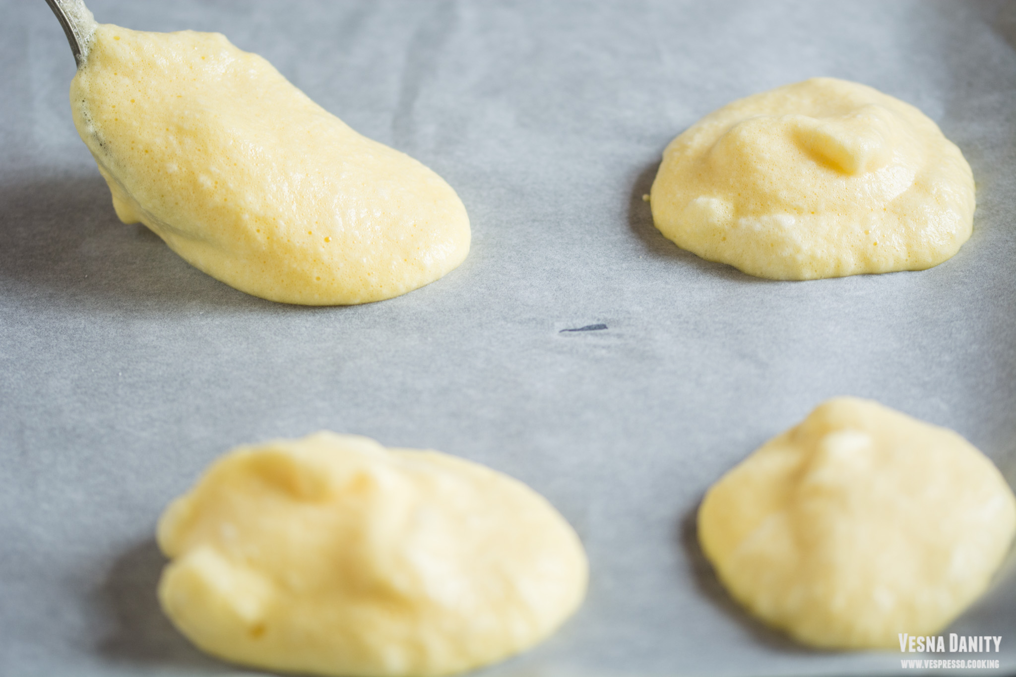 - Dospirea chiflelor. Am așezat chiflele pe o tavă tapetată cu hârtie de copt și le-am mai lăsat vreo 30 minute la dospit, acoperite cu același prosop.