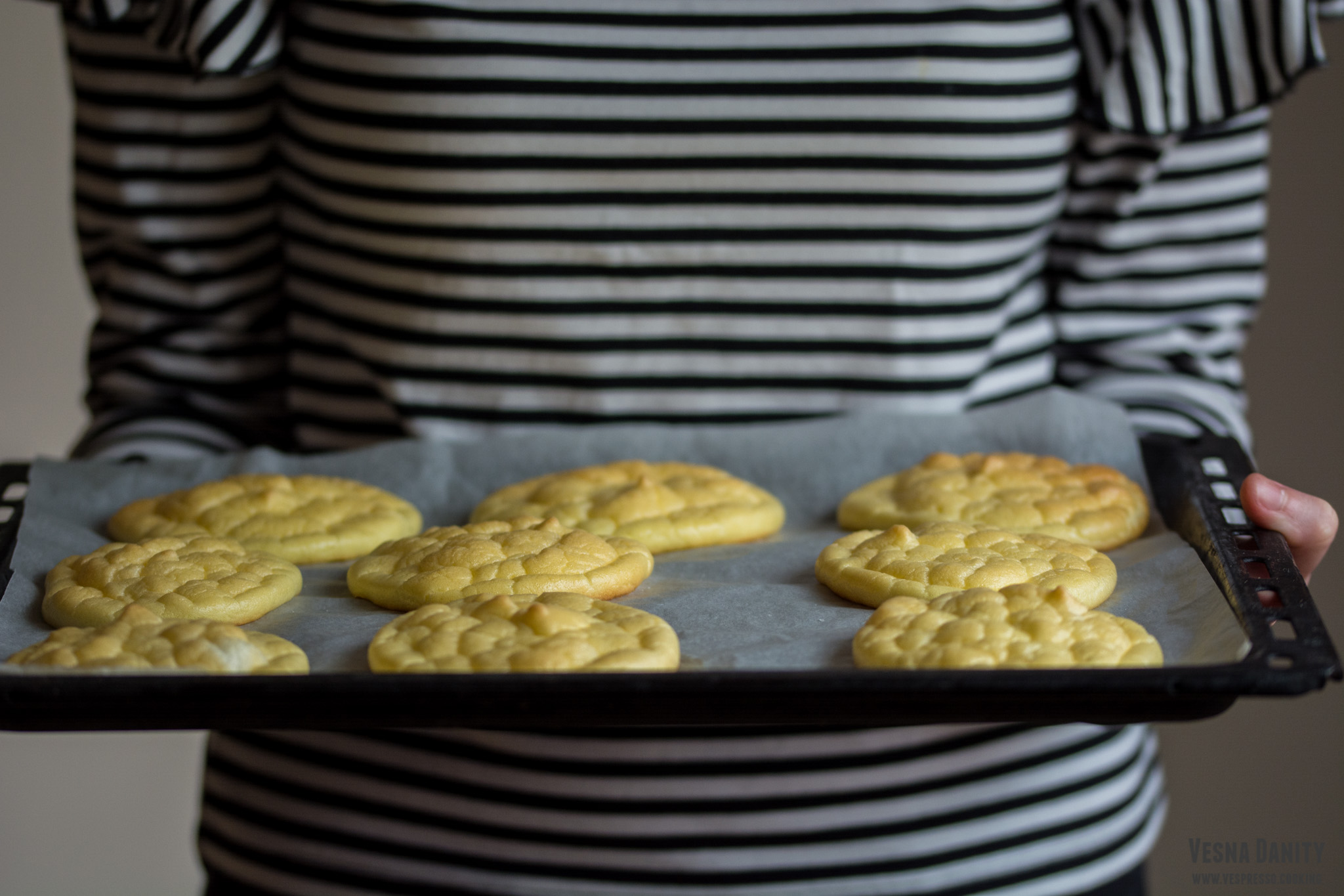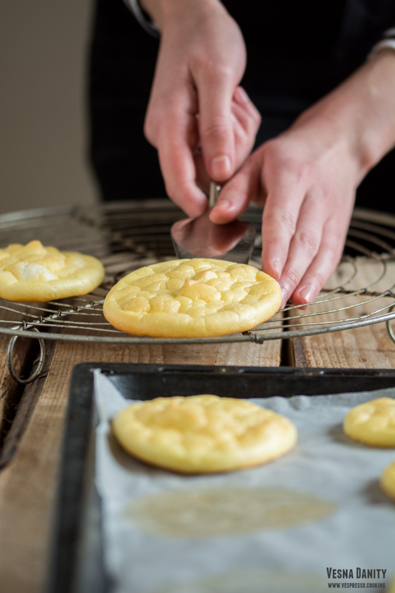 - Coacere. După cele 30 minute le-am copt în partea din mijloc a cuptorului timp de vreo 20 minute, atât cât să se rumenească uniform și să înmiresmeze toată bucătăria. Le-am scos din cuptor, le-am așezat pe un suport de sârmă și le-am lăsat să se răcească înainte de a le servi.