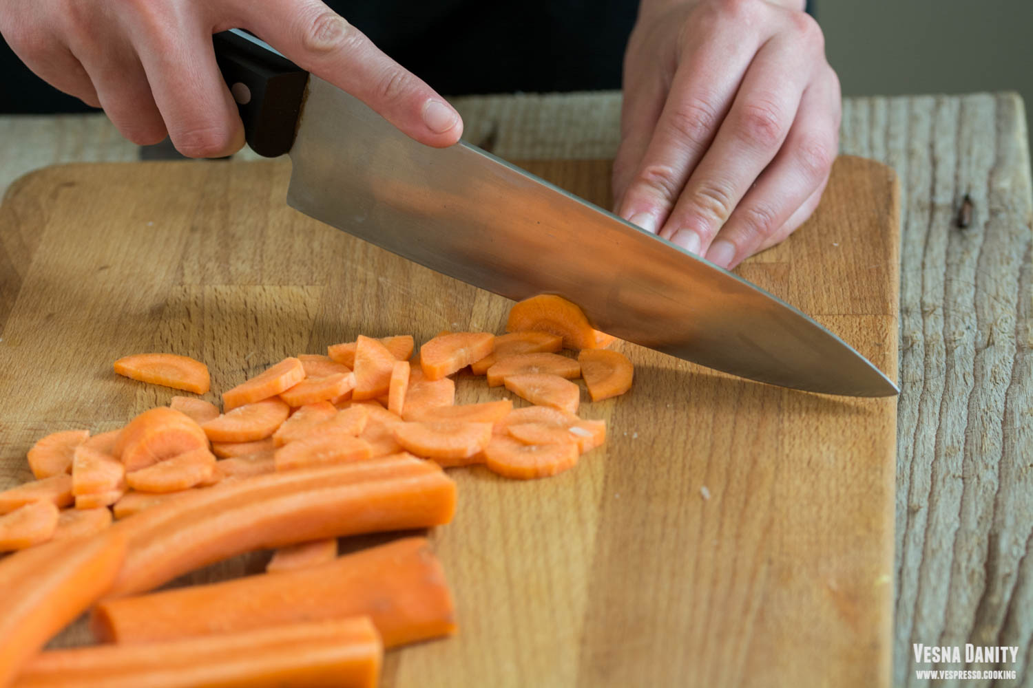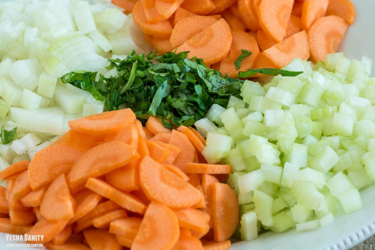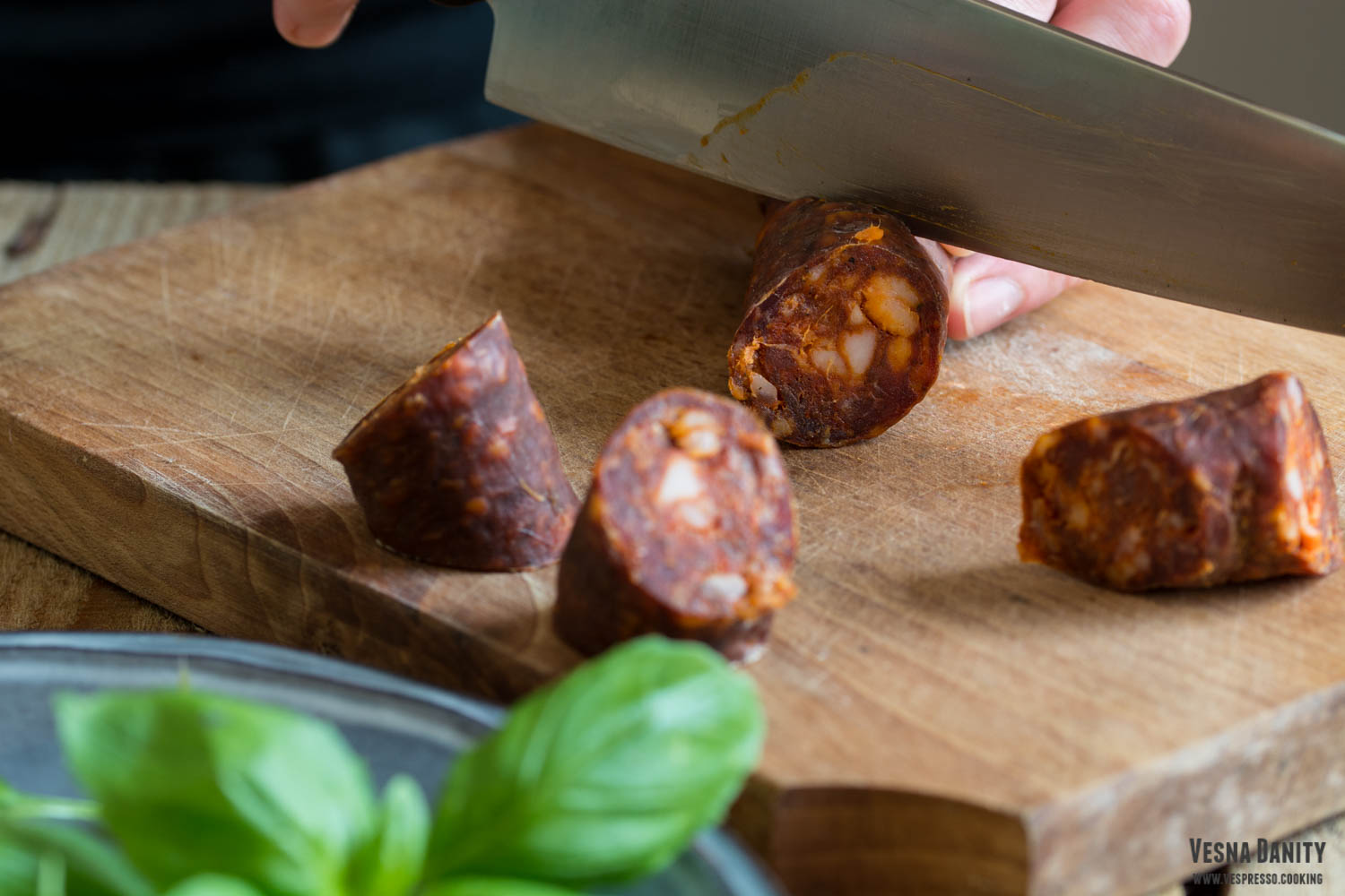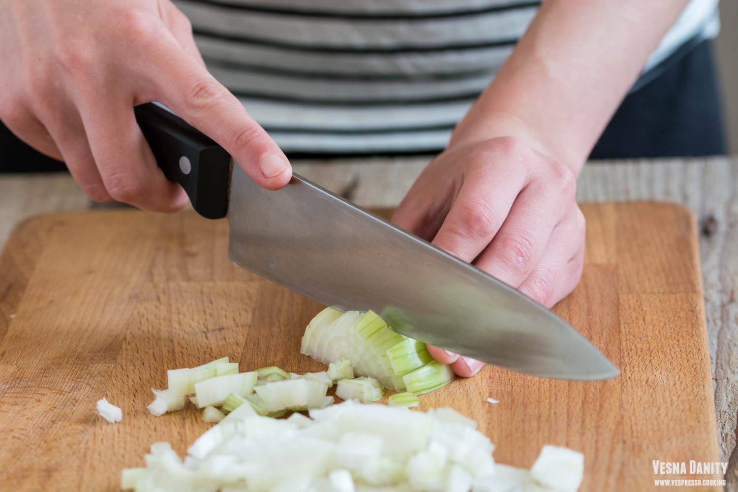 - Ceapa și usturoiul. Am decojit ceapa și am tăiat-o rondele. Am decojit usturoiul.