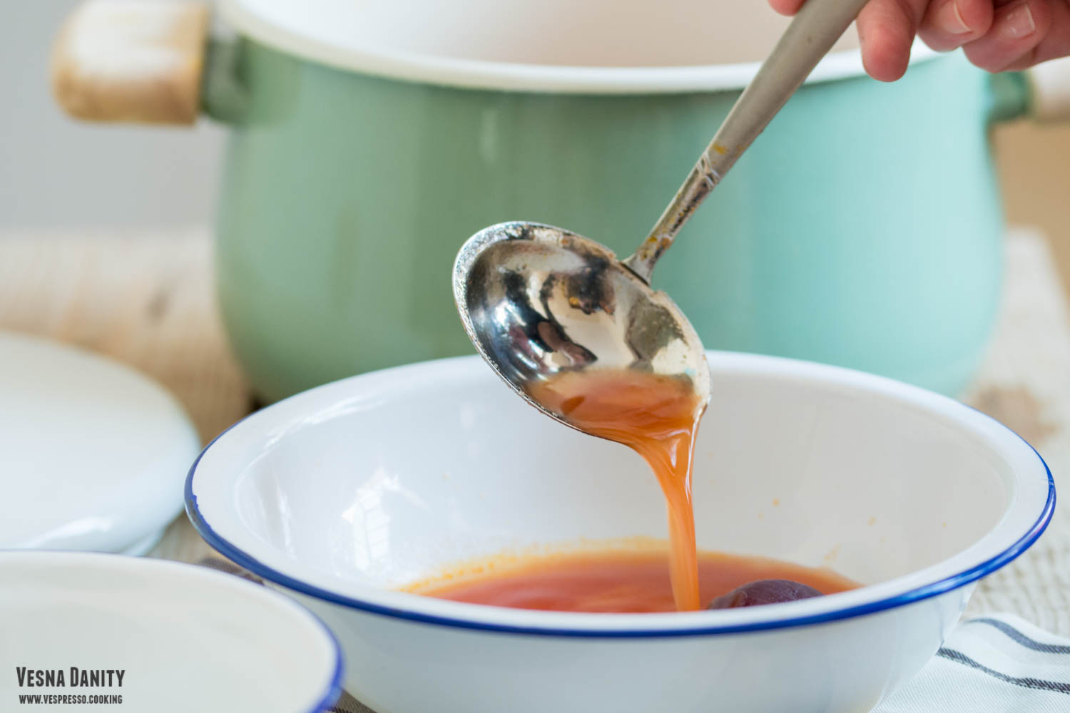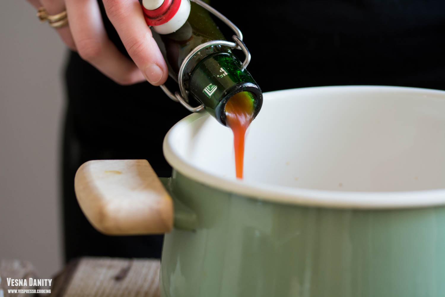 - Fierberea sosului. Am turnat sosul într-o oală și l-am fiert la foc mic-mediu până când s-a îngroșat (vreo 7 minute).
