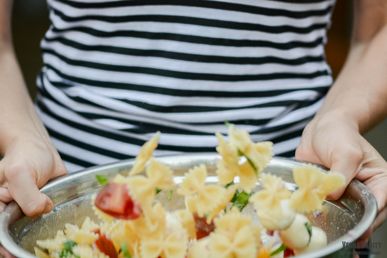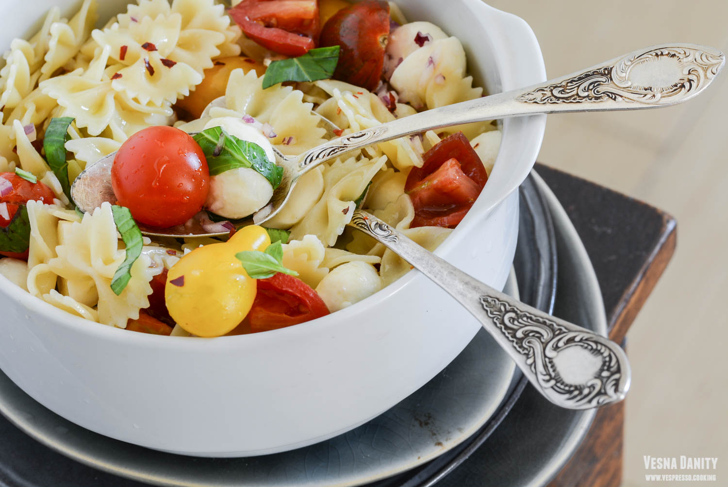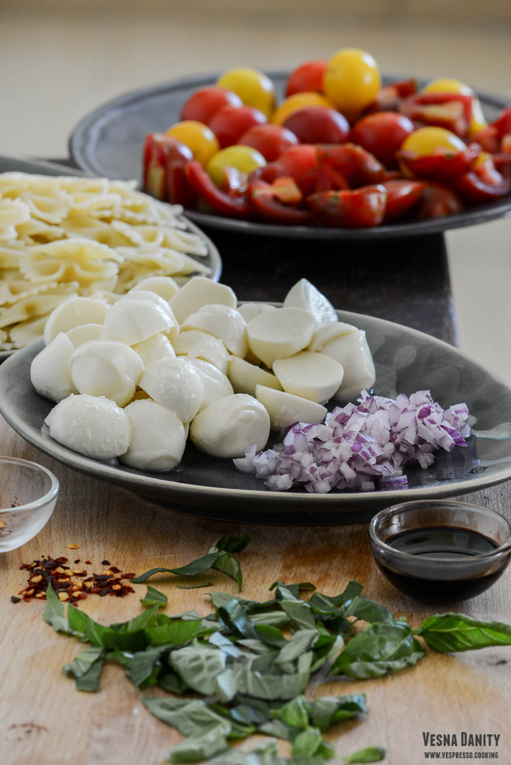 - Asamblare & servire. Am turnat sosul peste pastele fierte și scurse, după care am amestecat energic. Am servit pastele cu sos de ardei copt în boluri; am presărat fulgi de drojdie inactivă și panglici de busuioc.