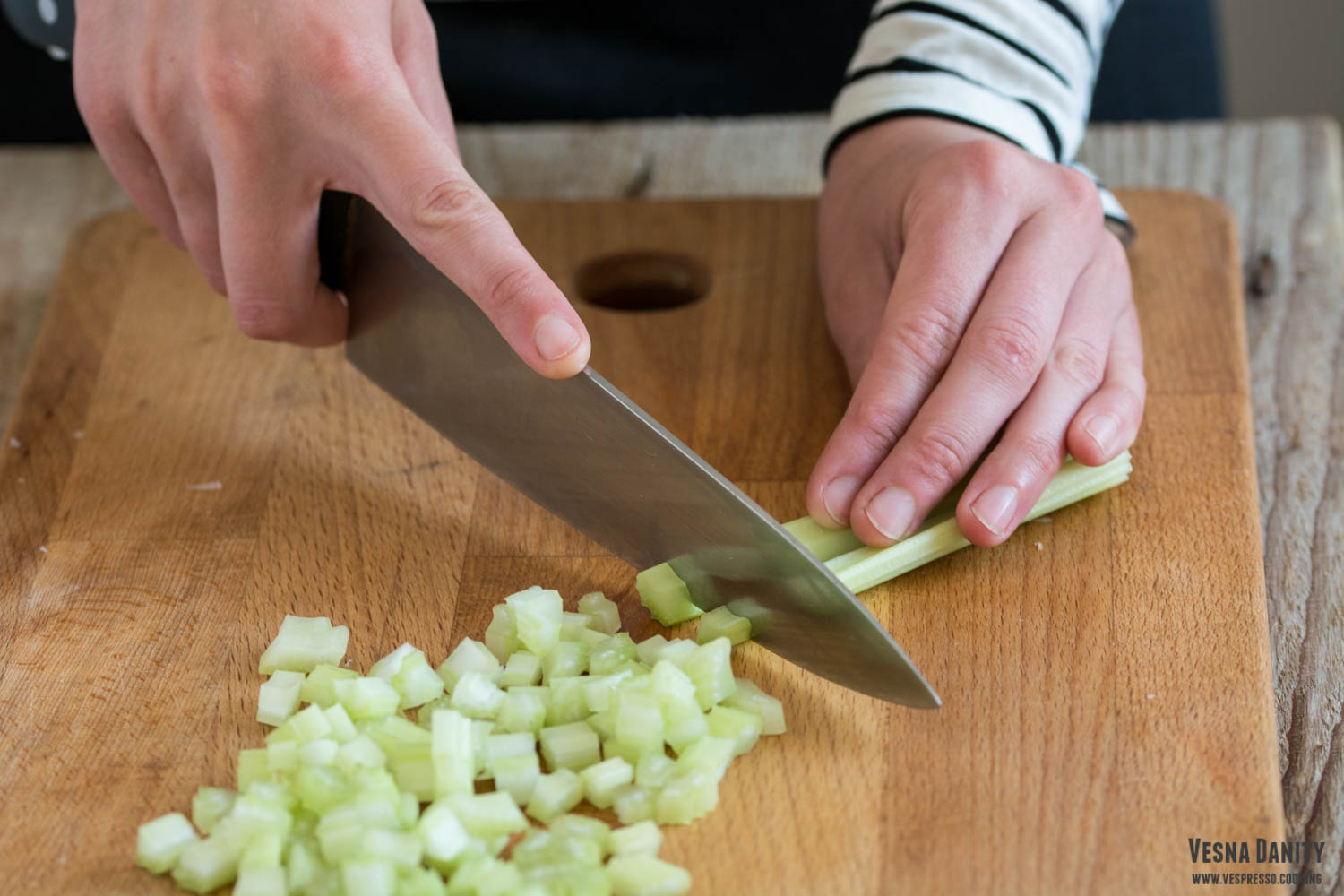 - Decojirea ardeilor. Am decojit amândoi ardeii, le-am înlăturat cotorul și semințele, i-am clătit și i-am uscat cu un prosop de hârtie.