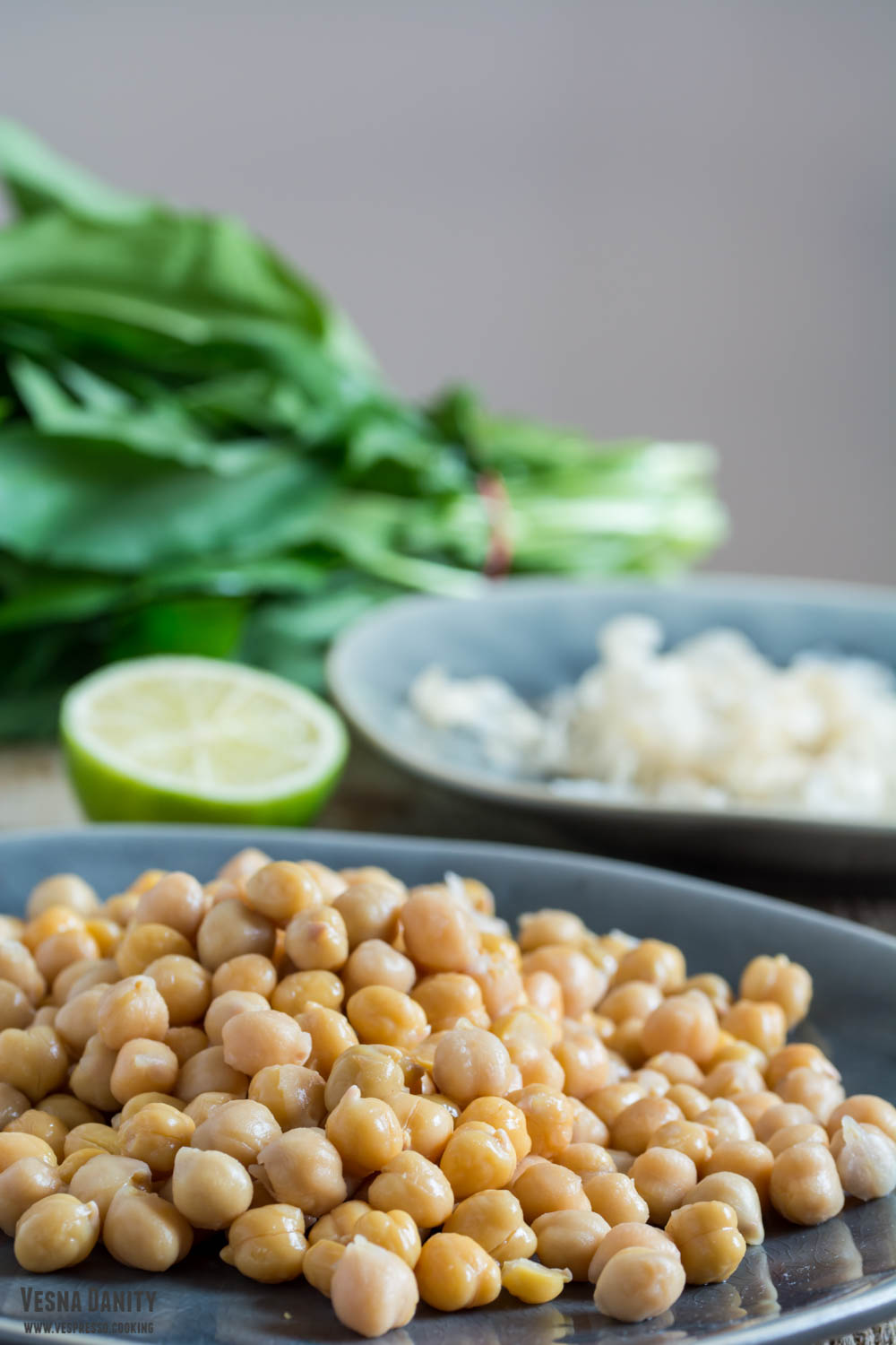 Varianta pe care ți-o propun este una nemaipomenit de catifelată, aromată și colorată: hummus cu leurdă. Minunata leurdă, cu gustul ei plăcut de usturoi, este și un ingredient nutritiv, bogat în carotenoizi, Vit A, Vit C și complex de vit B. Consumată crudă, leurda poate avea un gust prea agresiv, prea ierbos pentru unele papile gustative, așa că prefer să o blanșez înainte de a o folosi. Hai să purcedem, zic!