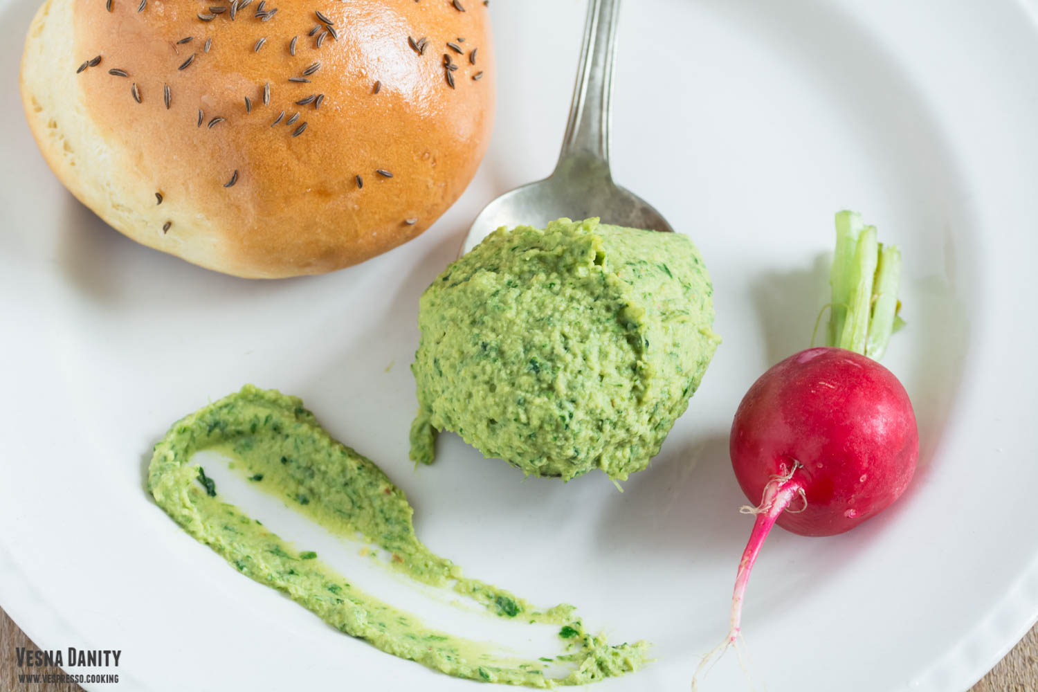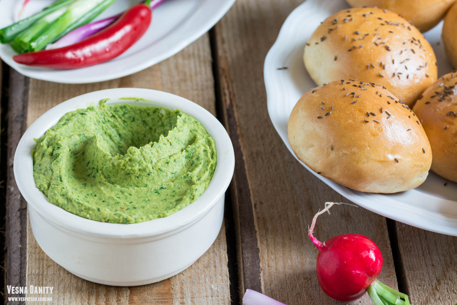7. Am servit hummusul cu chifle făcute în casă, ceapă verde și ridichi.