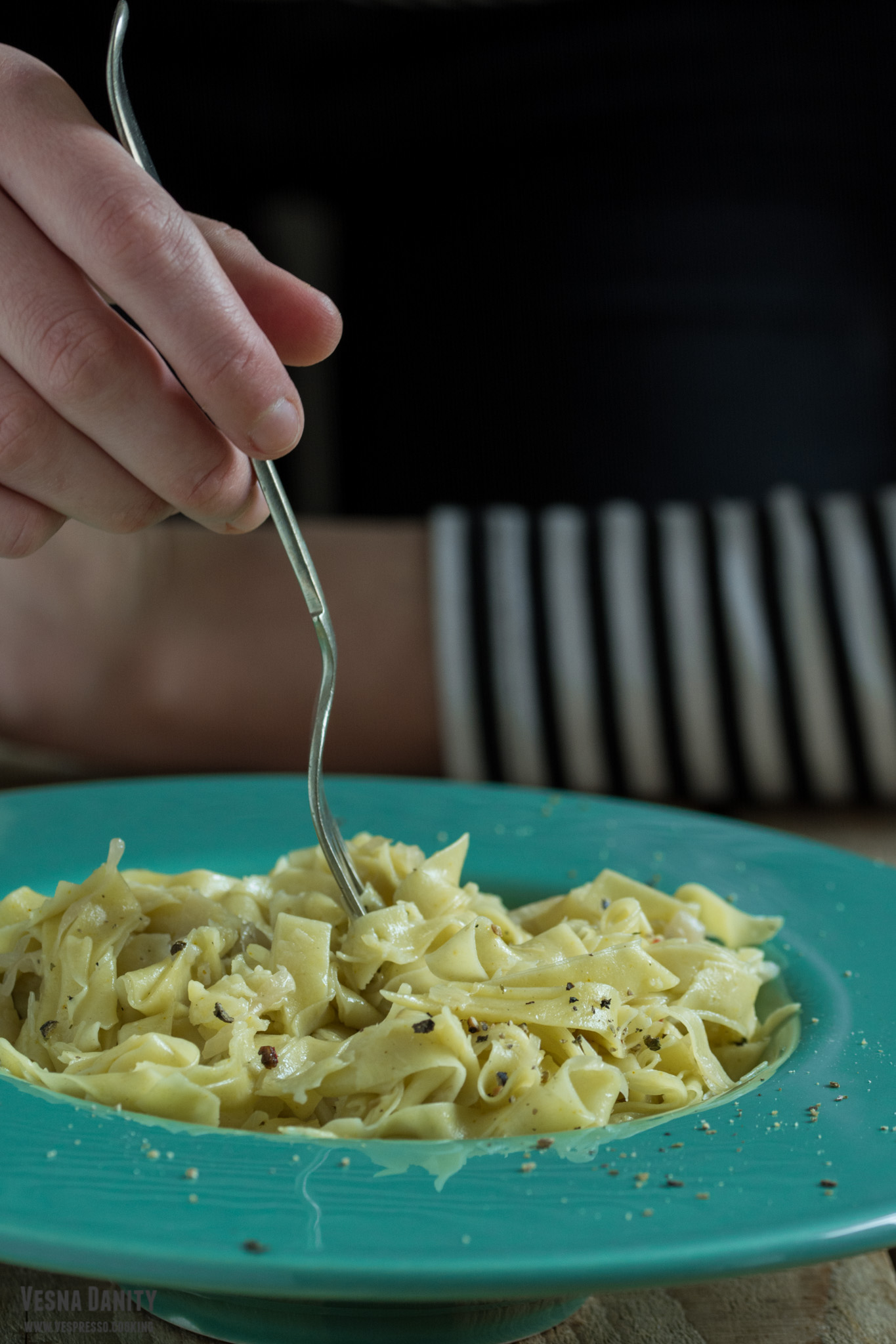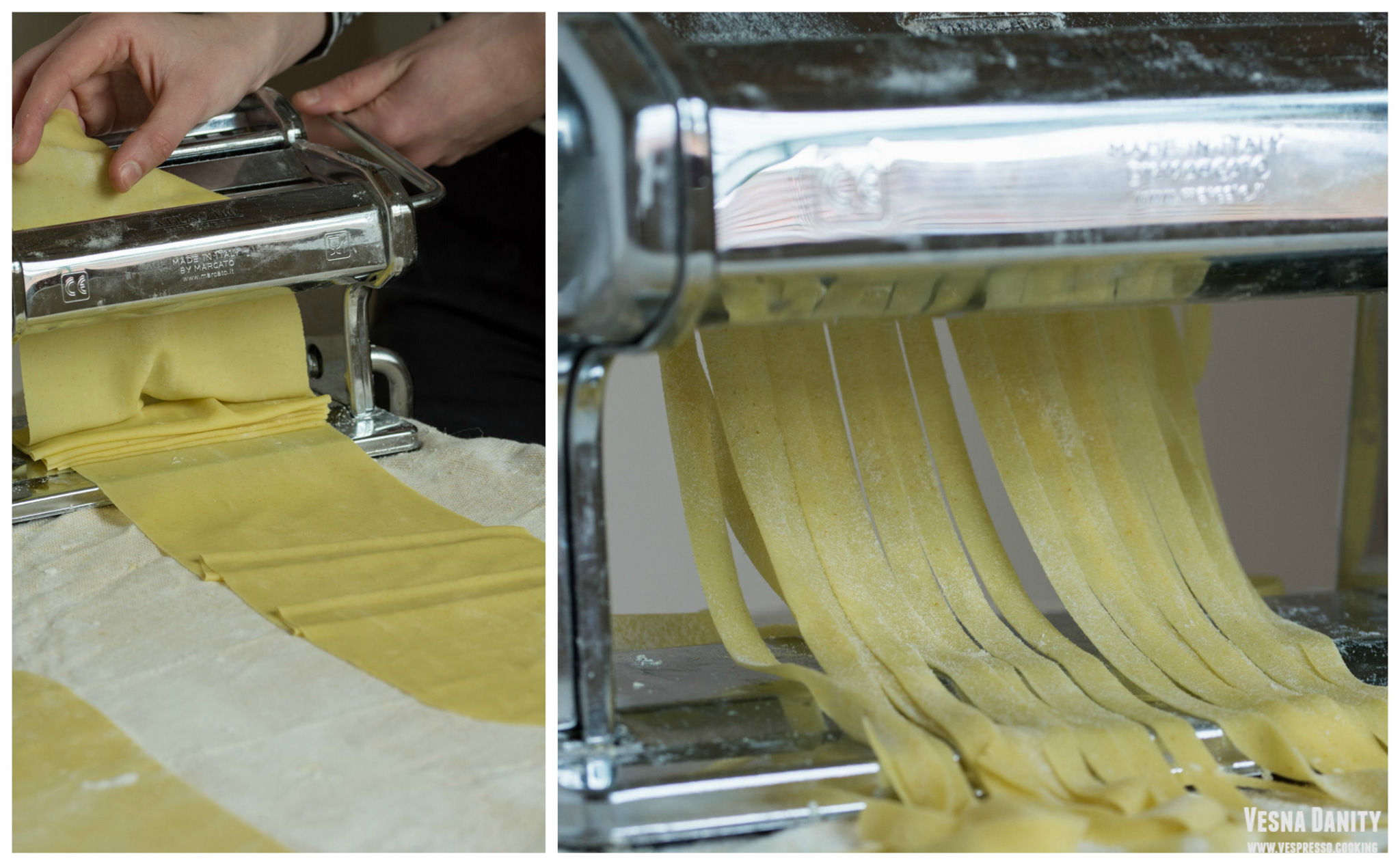 Pentru acești minunați tăieței n-ai nevoie decât de o mână de ingrediente necostisitoare și de vreo 20 de minute. Dacă te hotărăști să nu-i cumperi, ci să-i prepari de la zero, n-ai nevoie de mai mult de-un ceas. Acum îi fac cu mașina de tăieței, dar ani de zile i-am meșteșugit cu sucitorul și cu un cuțit ascuțit (dovada e aici). Atunci când îi prepar în varianta vegană (de post), înlocuiesc ouăle cu apă și ulei de măsline. Mie nu-mi plac tăiețeii palizi, așa că în făină adaug un praf de turmenic. Acesta le dă o culoare aurie absolut superbă. Eu zic să ne apucăm de treabă, că deja îmi plouă în gură!