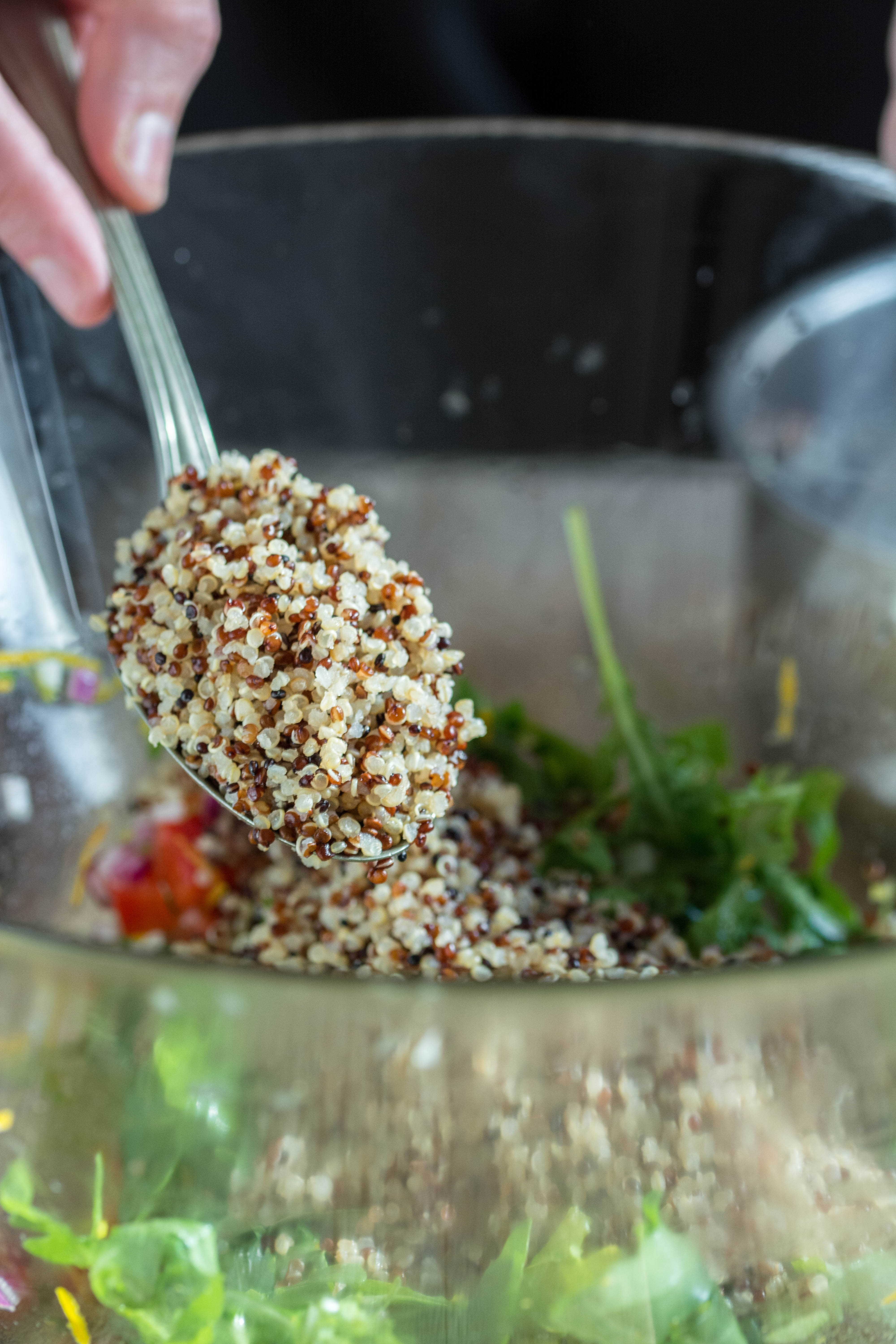 - Aluatul. Am adăugat ingredientele umede peste cele uscate și am amestecat cu spatula până la omogenizare, fară să exagerez.